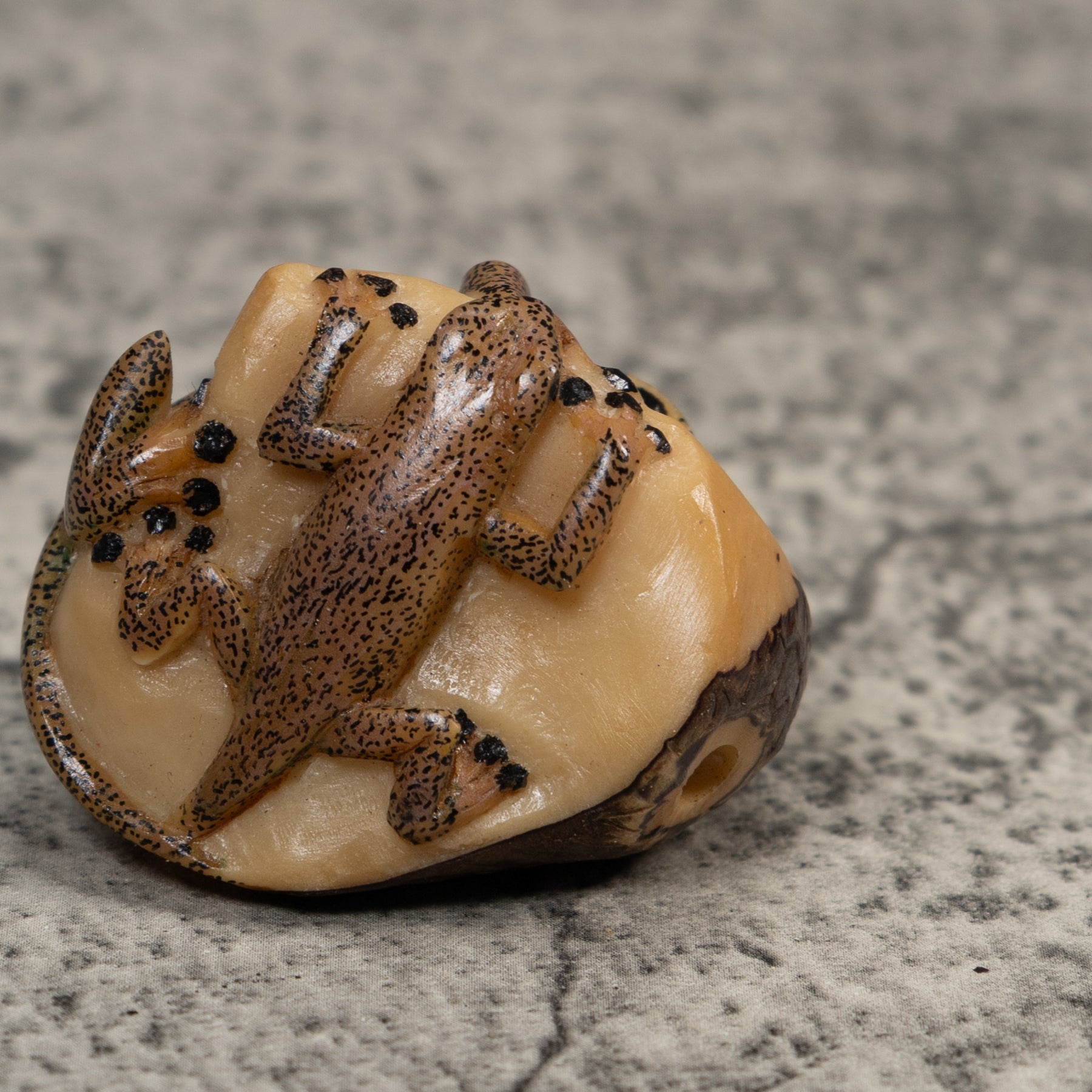Hand carved from sustainably harvested tagua nut, often called “vegetable ivory”, this charming Gecko celebrates the rich biodiversity of the Latin American rainforest. Each small sculpture is created by skilled artisans in Panama who carefully shape and polish the natural nut before bringing the animal to life with detailed hand painting. Every piece is made by our artisan partners for TraderBrock, helping support traditional craft and fair, long term relationships with local makers.