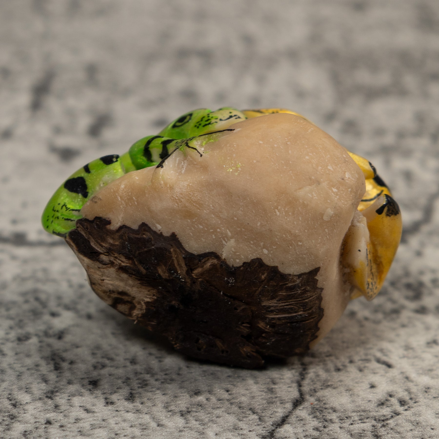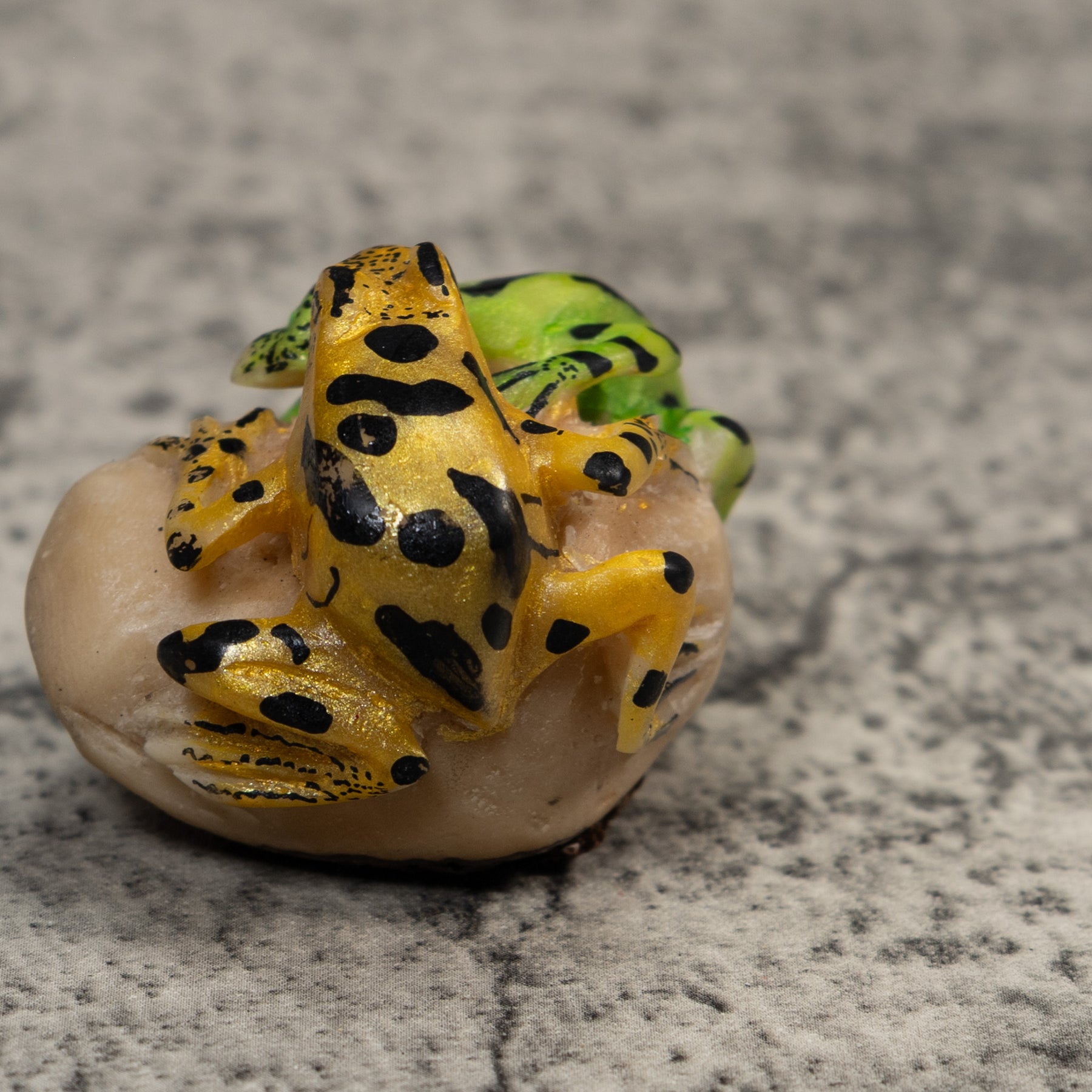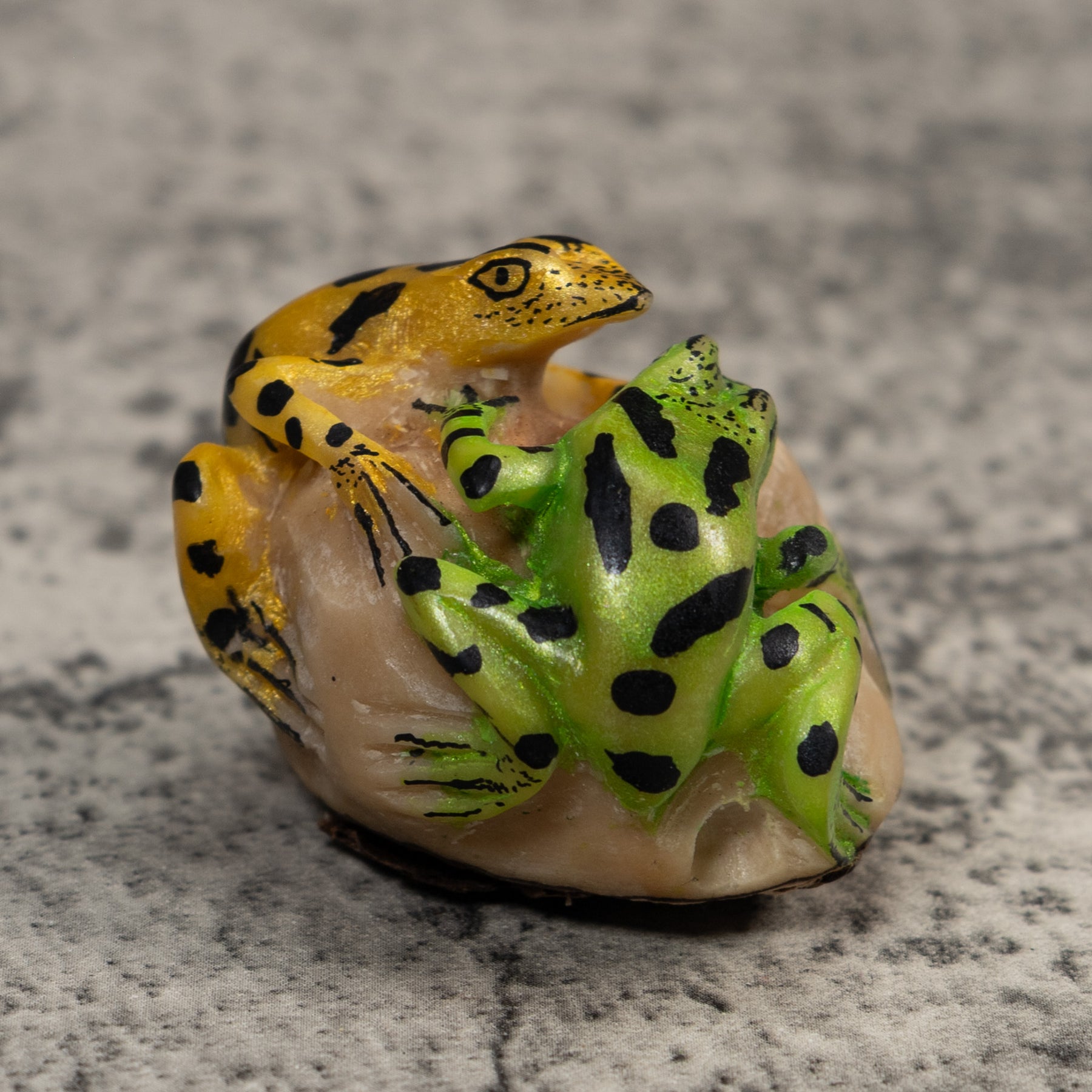 Hand carved from sustainably harvested tagua nut, often called “vegetable ivory”, this charming Frog celebrates the rich biodiversity of the Latin American rainforest. Each small sculpture is created by skilled artisans in Panama who carefully shape and polish the natural nut before bringing the animal to life with detailed hand painting. Every piece is made by our artisan partners for TraderBrock, helping support traditional craft and fair, long term relationships with local makers.