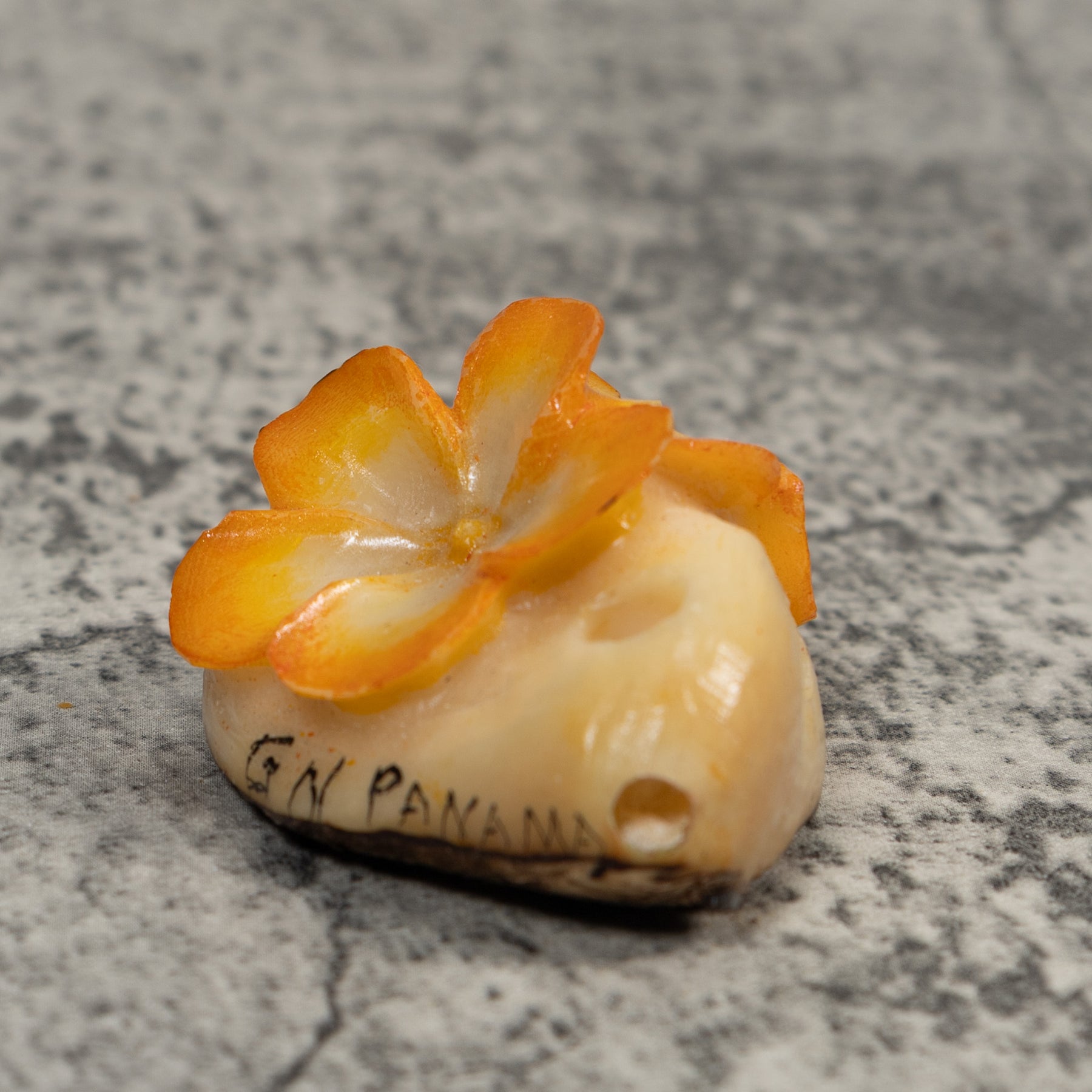 Hand carved from sustainably harvested tagua nut, often called “vegetable ivory”, this charming Flower celebrates the rich biodiversity of the Latin American rainforest. Each small sculpture is created by skilled artisans in Panama who carefully shape and polish the natural nut before bringing the animal to life with detailed hand painting. Every piece is made by our artisan partners for TraderBrock, helping support traditional craft and fair, long term relationships with local makers.