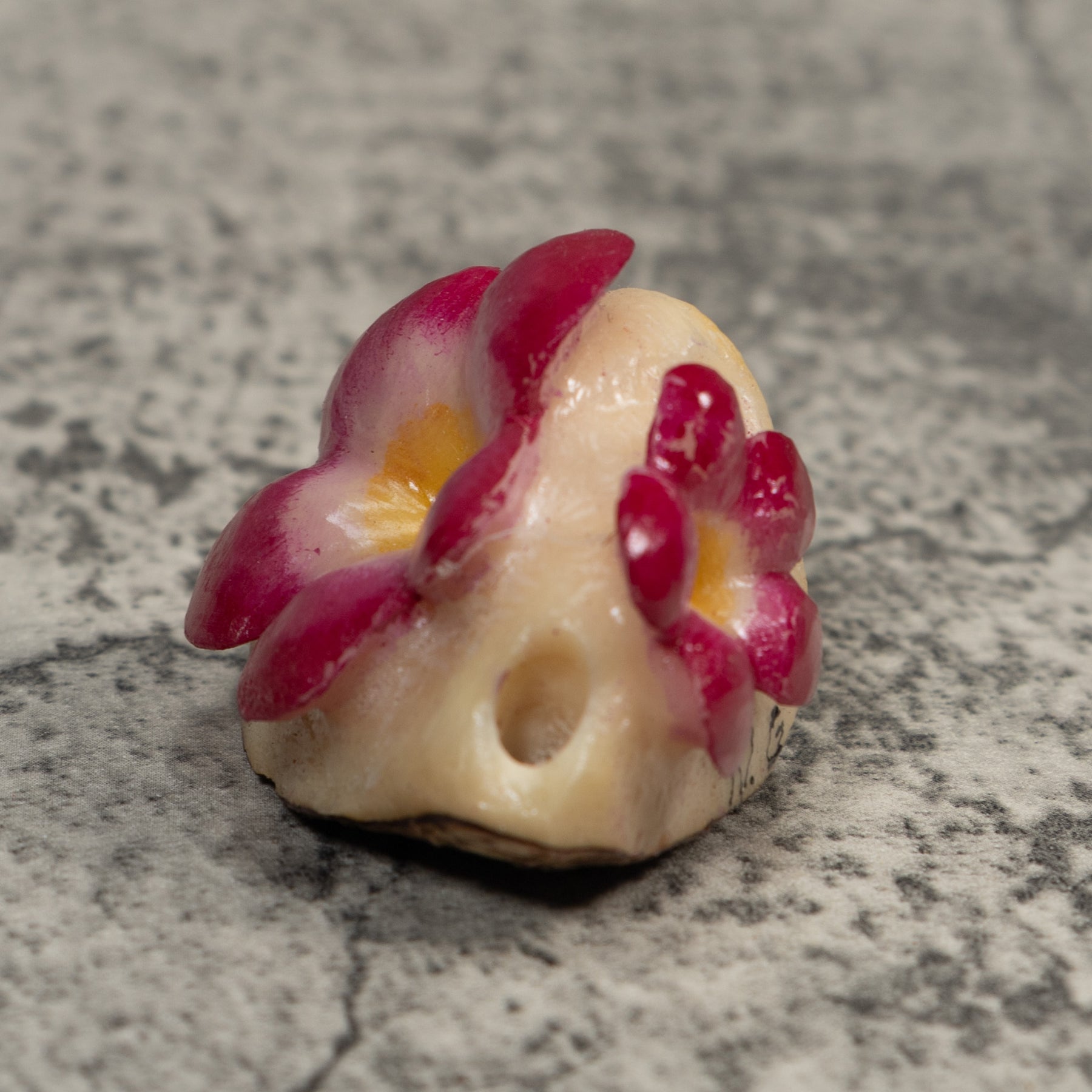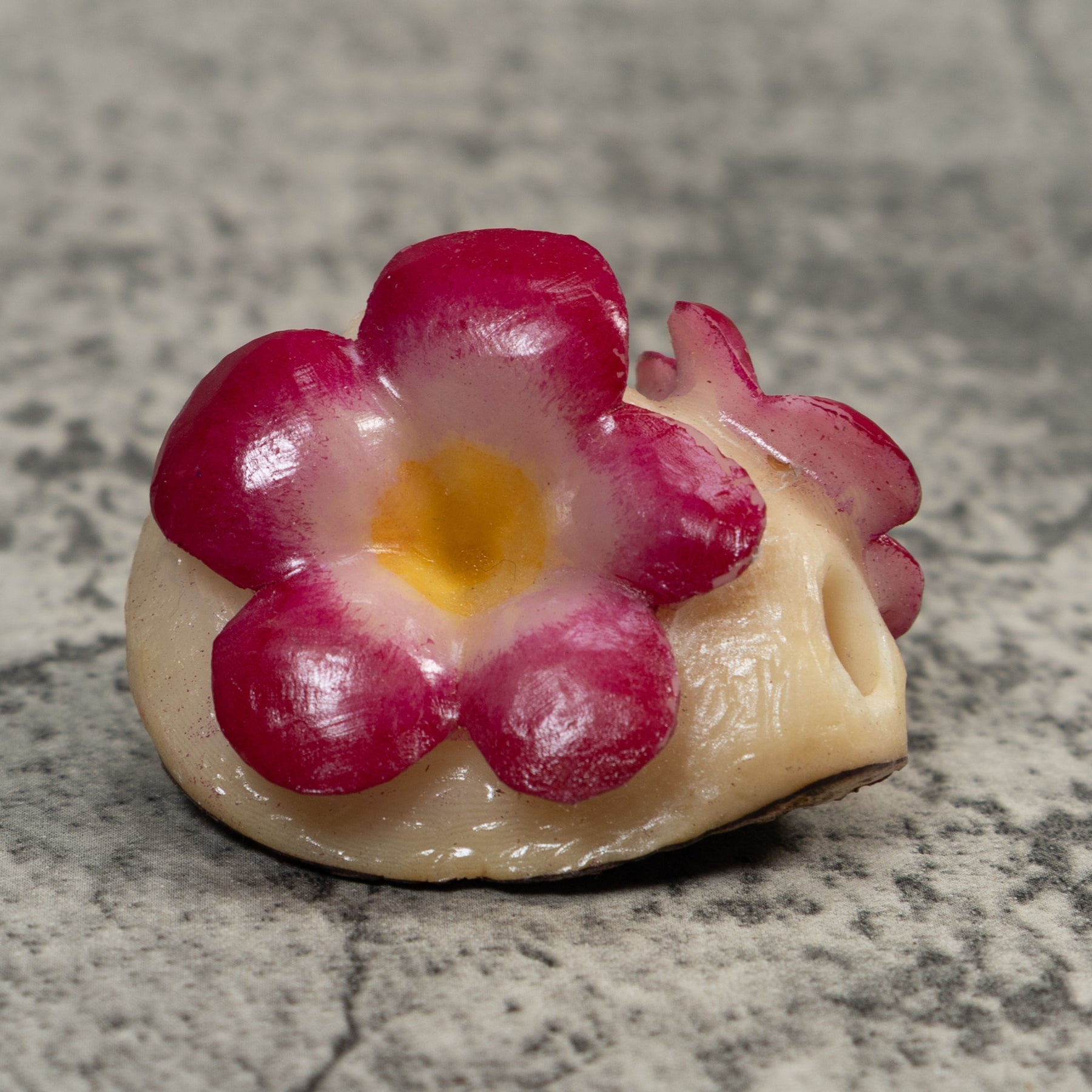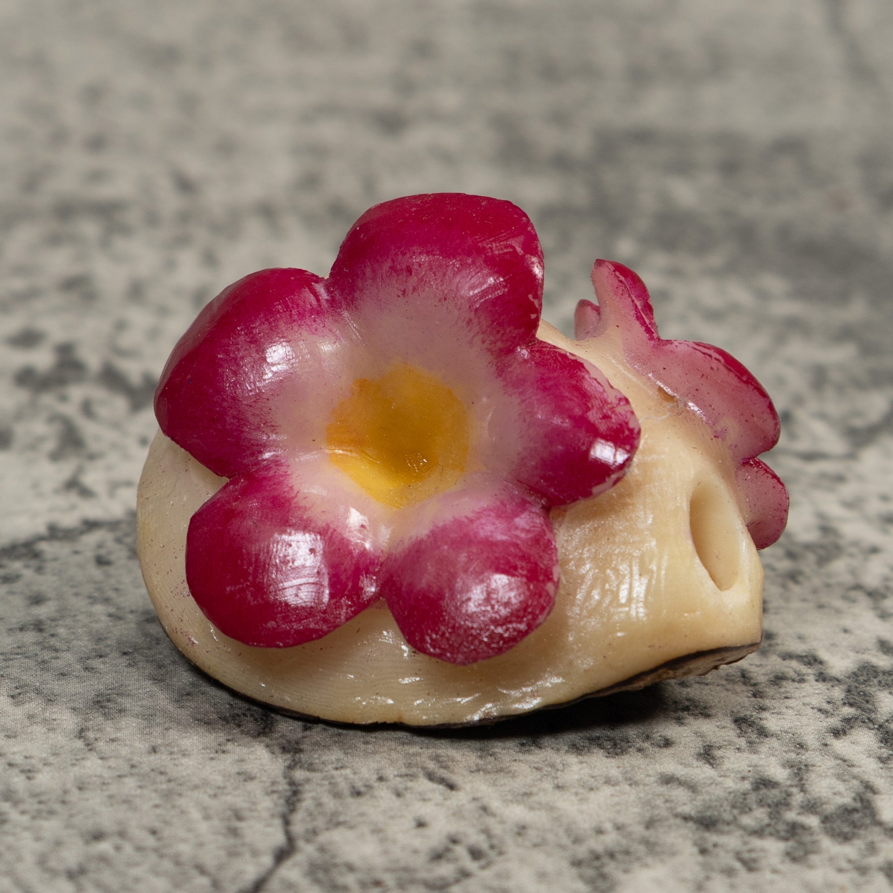 Hand carved from sustainably harvested tagua nut, often called “vegetable ivory”, this charming Flower celebrates the rich biodiversity of the Latin American rainforest. Each small sculpture is created by skilled artisans in Panama who carefully shape and polish the natural nut before bringing the animal to life with detailed hand painting. Every piece is made by our artisan partners for TraderBrock, helping support traditional craft and fair, long term relationships with local makers.