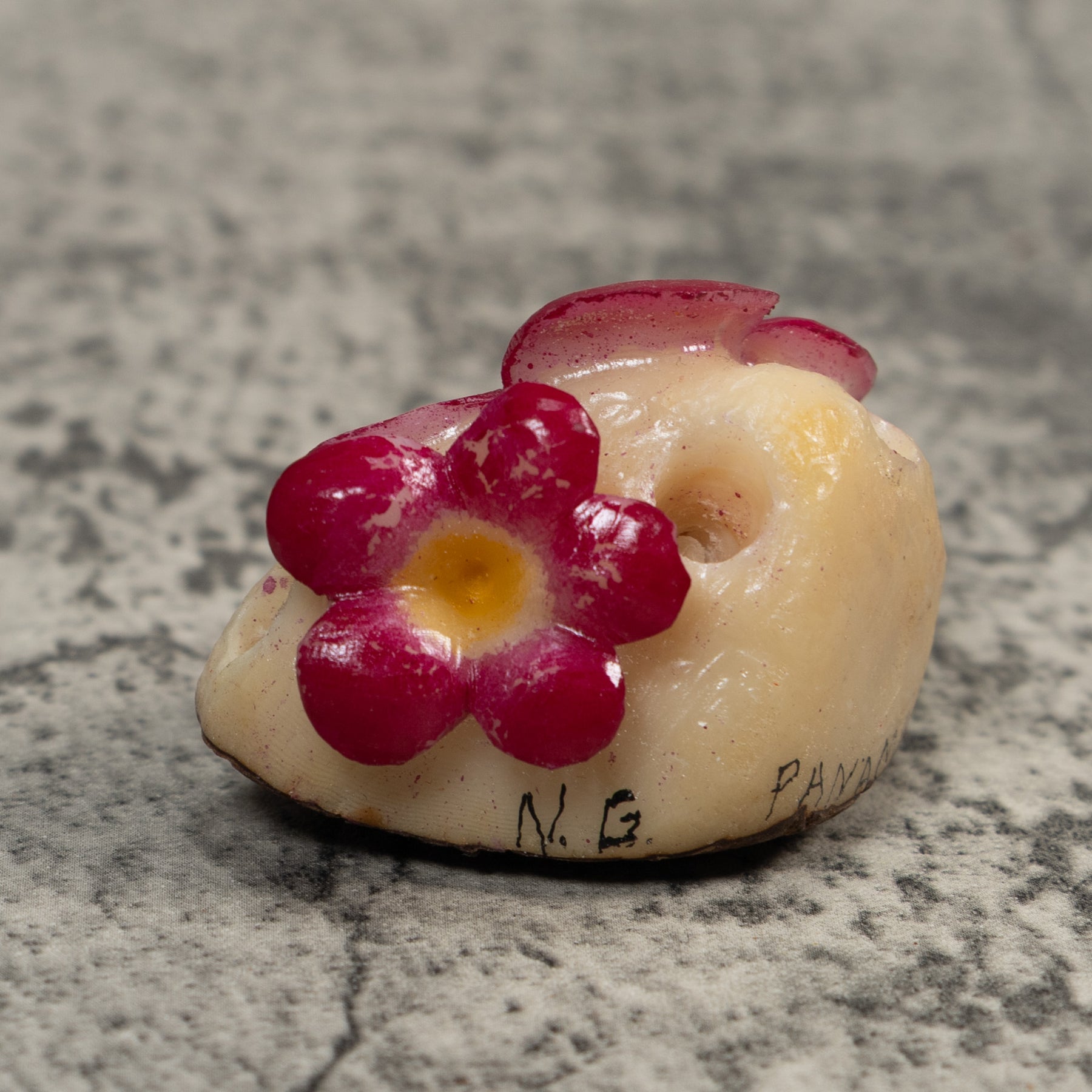 • Hand carved tagua nut “vegetable ivory” from the rainforest