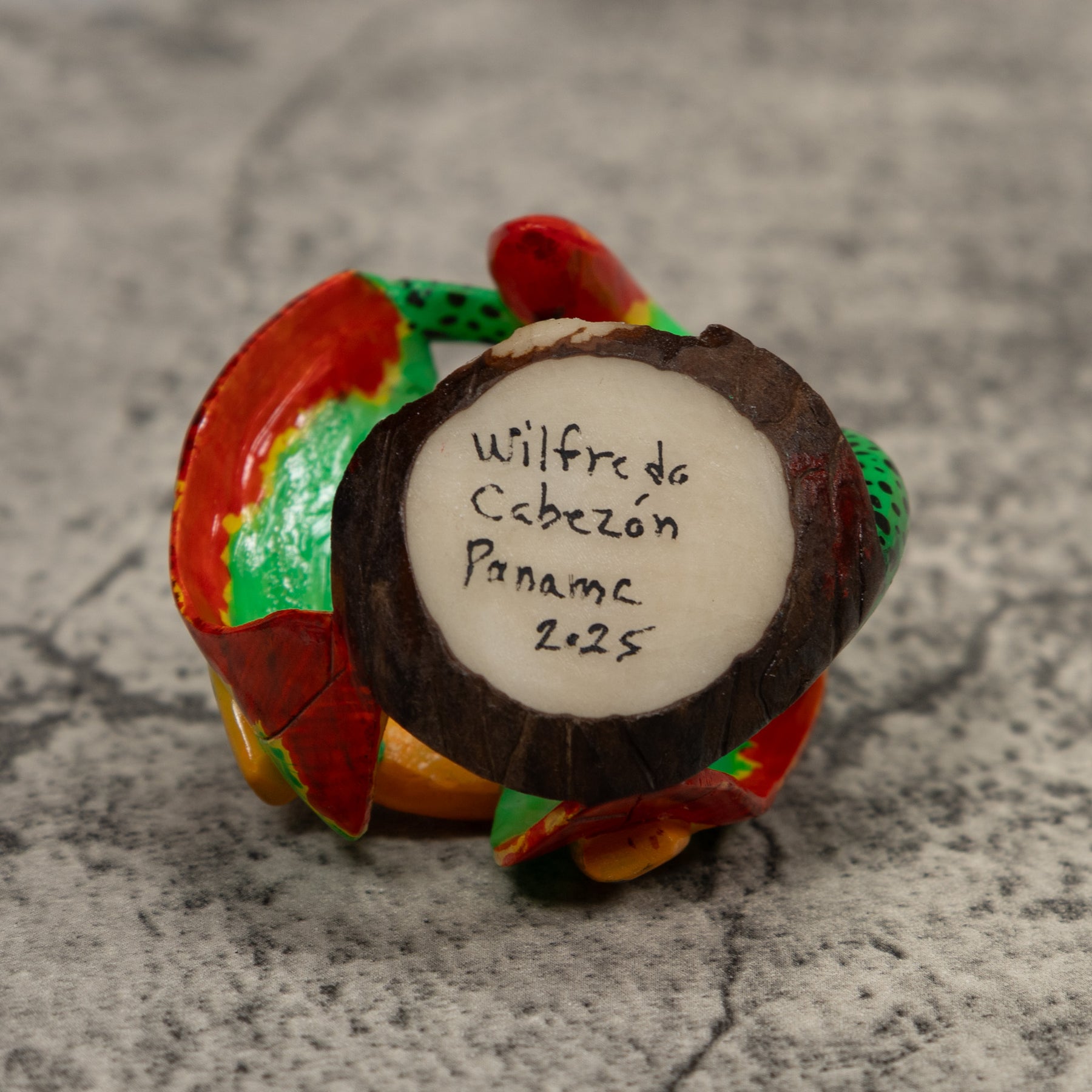 Hand carved from sustainably harvested tagua nut, often called “vegetable ivory”, this charming Golden Frog Tagua Carving celebrates the rich biodiversity of the Latin American rainforest. Each small sculpture is created by skilled artisans in Panama who carefully shape and polish the natural nut before bringing the animal to life with detailed hand painting. Every piece is made by our artisan partners for TraderBrock, helping support traditional craft and fair, long term relationships with local makers.