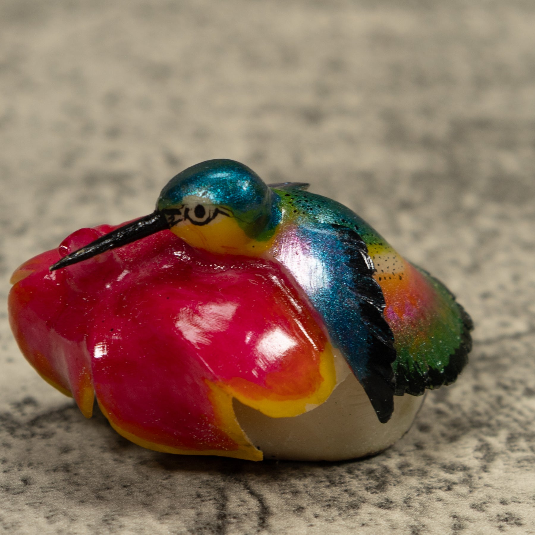 Hand carved from sustainably harvested tagua nut, often called “vegetable ivory”, this charming Hummingbird Tagua Carving celebrates the rich biodiversity of the Latin American rainforest. Each small sculpture is created by skilled artisans in Panama who carefully shape and polish the natural nut before bringing the animal to life with detailed hand painting. Every piece is made by our artisan partners for TraderBrock, helping support traditional craft and fair, long term relationships with local makers.