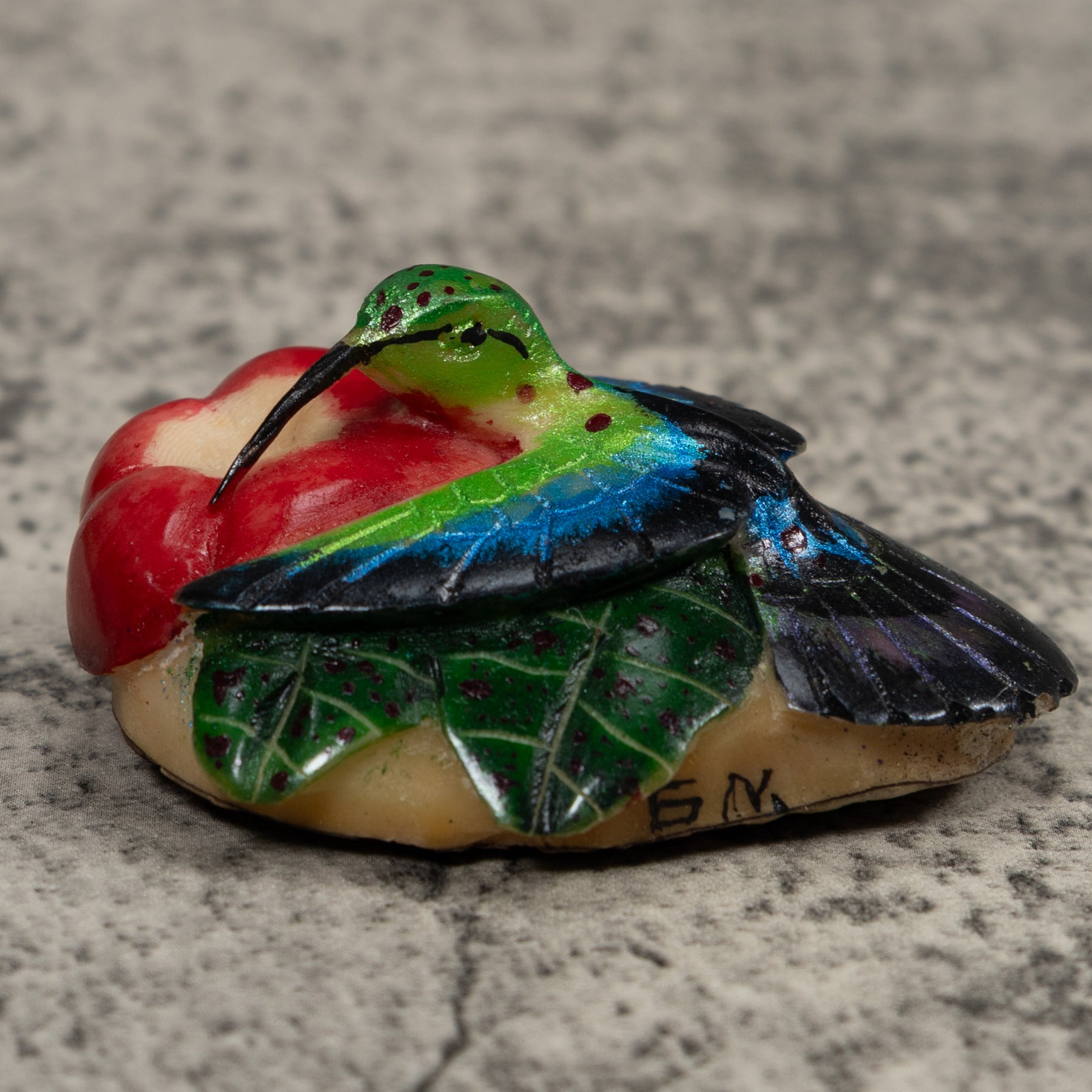 Hand carved from sustainably harvested tagua nut, often called “vegetable ivory”, this charming Hummingbird celebrates the rich biodiversity of the Latin American rainforest. Each small sculpture is created by skilled artisans in Panama who carefully shape and polish the natural nut before bringing the animal to life with detailed hand painting. Every piece is made by our artisan partners for TraderBrock, helping support traditional craft and fair, long term relationships with local makers.