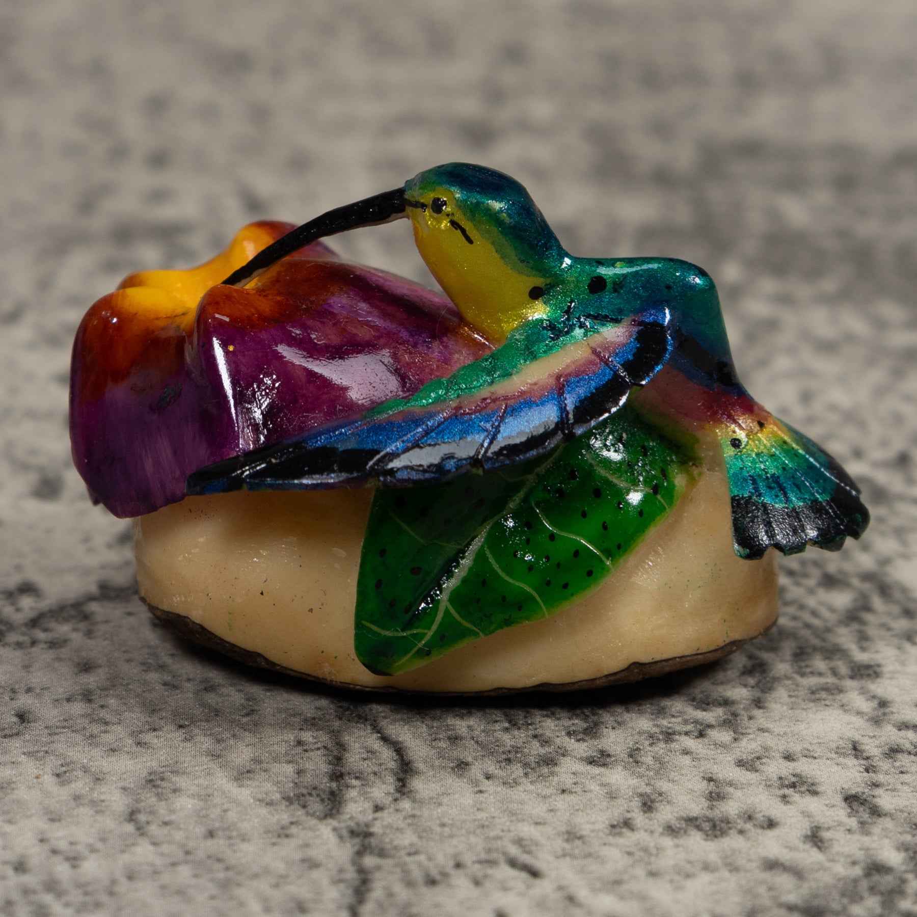 Hand carved from sustainably harvested tagua nut, often called “vegetable ivory”, this charming Hummingbird celebrates the rich biodiversity of the Latin American rainforest. Each small sculpture is created by skilled artisans in Panama who carefully shape and polish the natural nut before bringing the animal to life with detailed hand painting. Every piece is made by our artisan partners for TraderBrock, helping support traditional craft and fair, long term relationships with local makers.