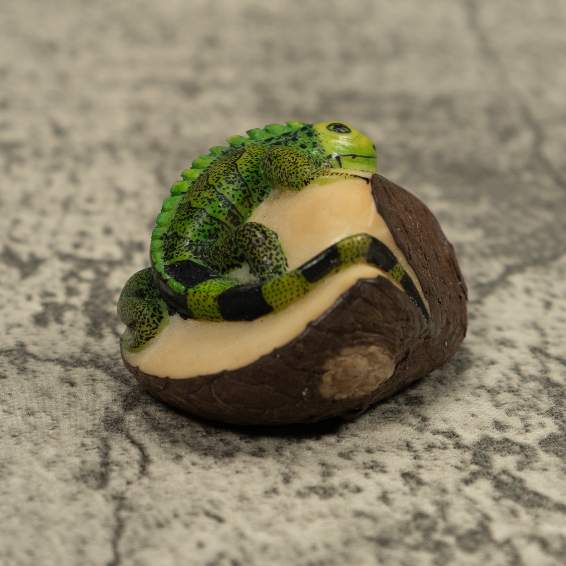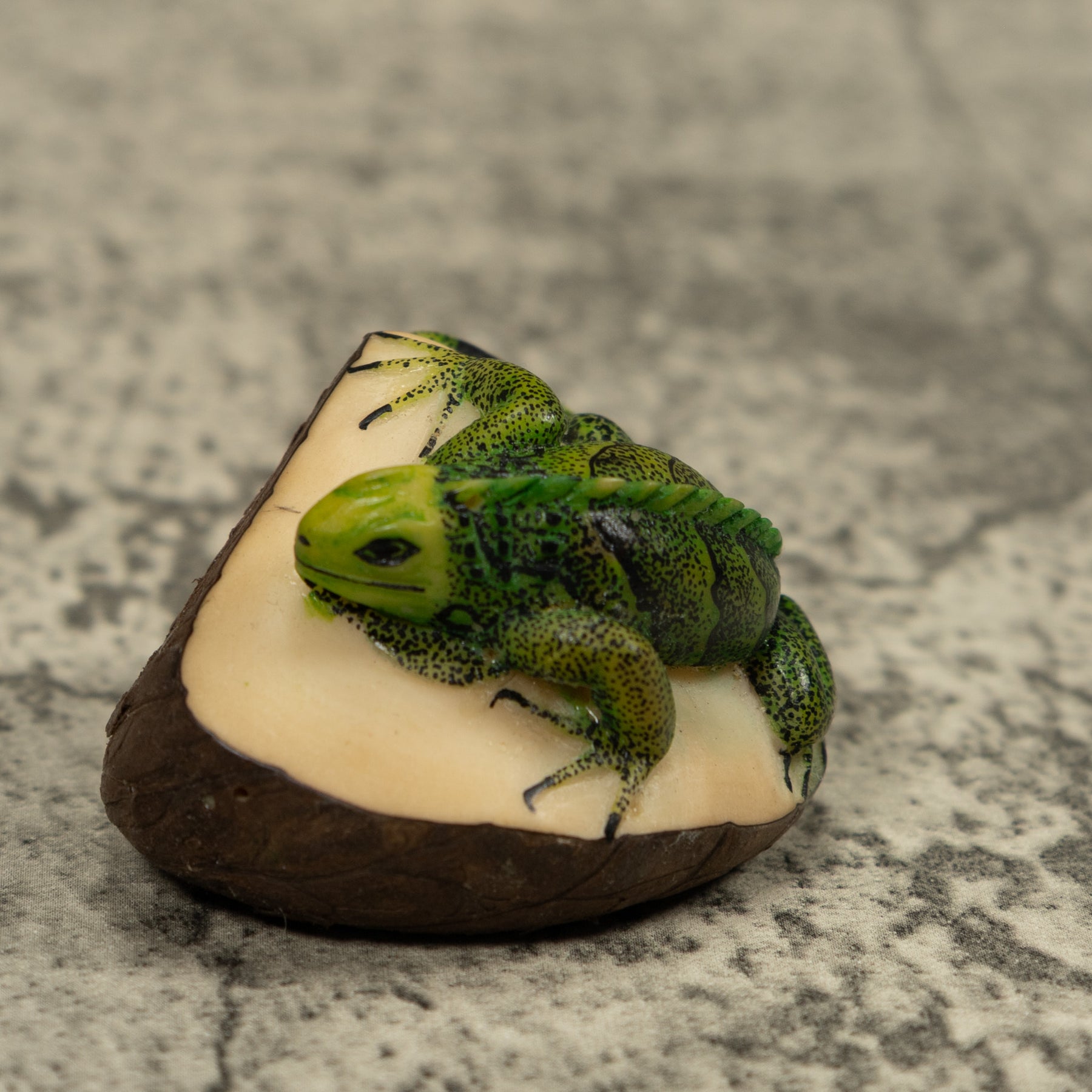 Hand carved from sustainably harvested tagua nut, often called “vegetable ivory”, this charming Iguana Lizard Reptile Tagua Carving celebrates the rich biodiversity of the Latin American rainforest. Each small sculpture is created by skilled artisans in Panama who carefully shape and polish the natural nut before bringing the animal to life with detailed hand painting. Every piece is made by our artisan partners for TraderBrock, helping support traditional craft and fair, long term relationships with local makers.