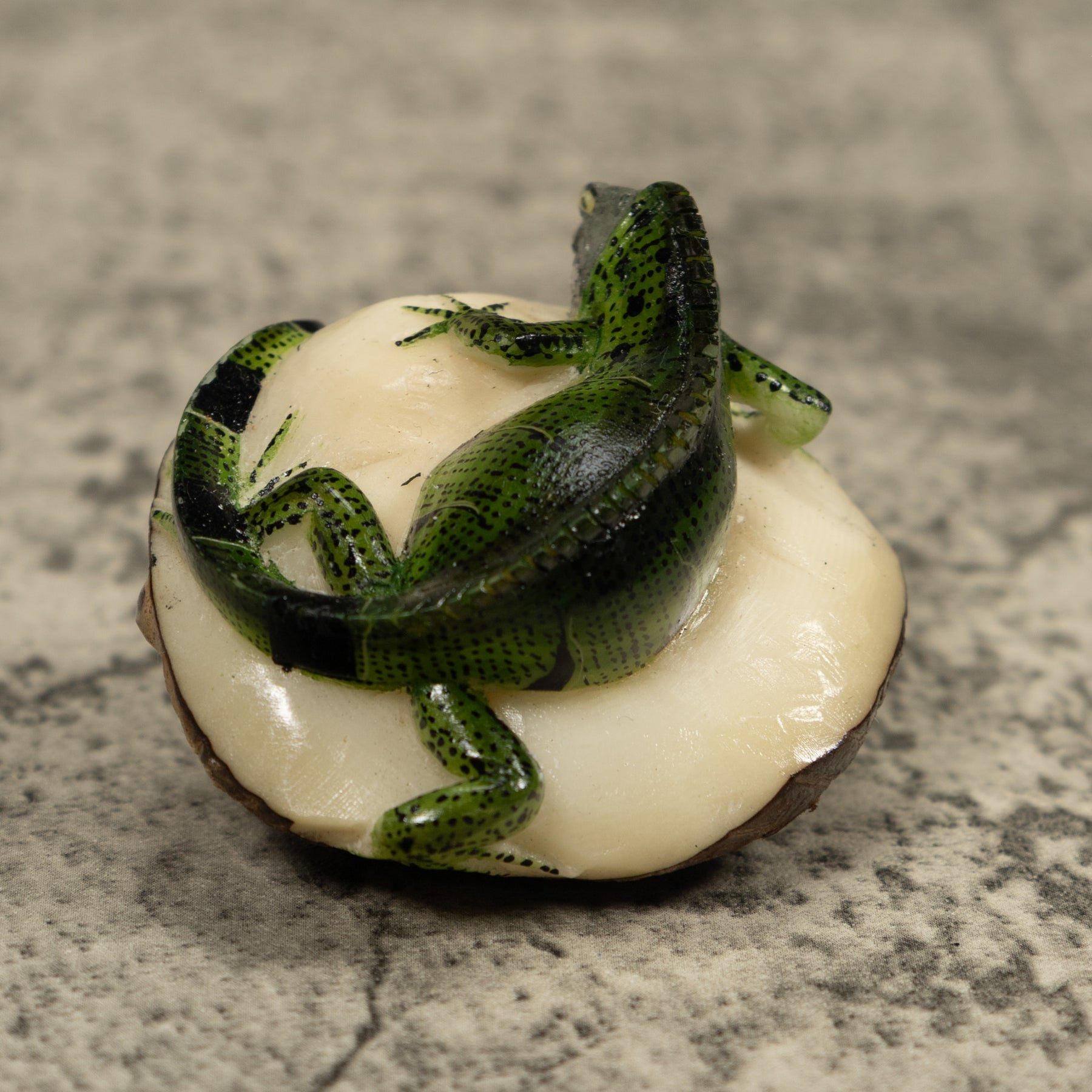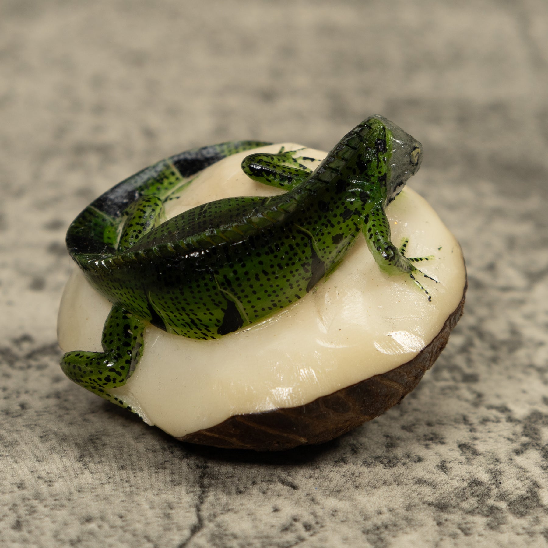 Hand carved from sustainably harvested tagua nut, often called “vegetable ivory”, this charming Iguana Lizard celebrates the rich biodiversity of the Latin American rainforest. Each small sculpture is created by skilled artisans in Panama who carefully shape and polish the natural nut before bringing the animal to life with detailed hand painting. Every piece is made by our artisan partners for TraderBrock, helping support traditional craft and fair, long term relationships with local makers.