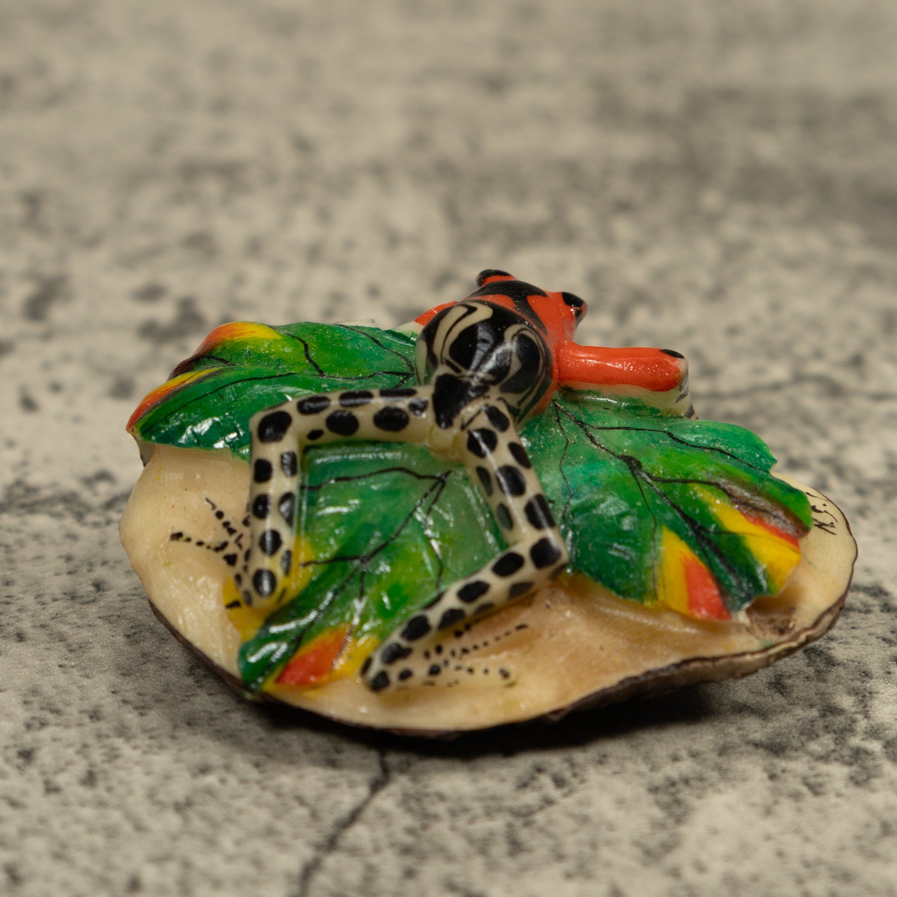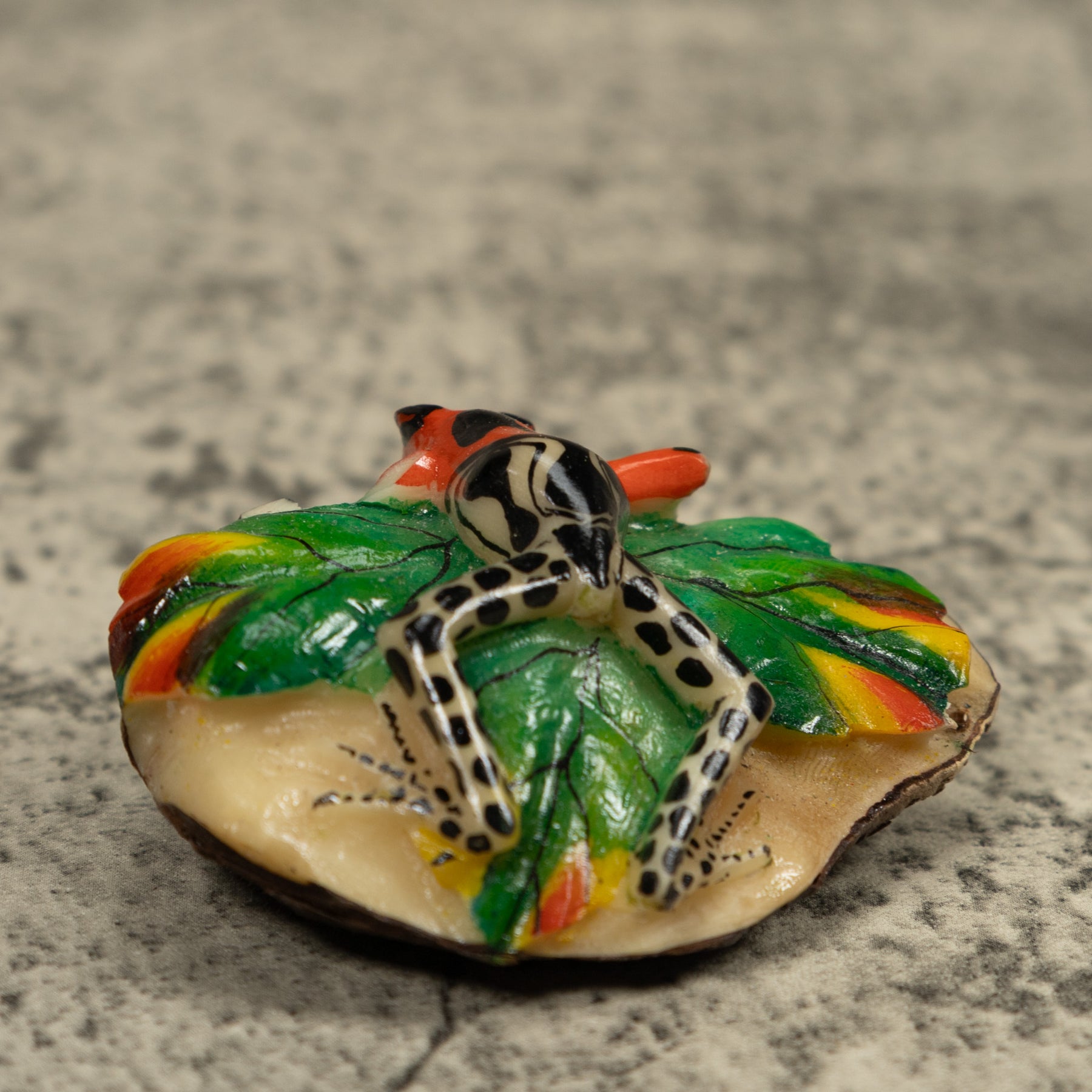 Hand carved from sustainably harvested tagua nut, often called “vegetable ivory”, this charming Poison Dart Frog celebrates the rich biodiversity of the Latin American rainforest. Each small sculpture is created by skilled artisans in Panama who carefully shape and polish the natural nut before bringing the animal to life with detailed hand painting. Every piece is made by our artisan partners for TraderBrock, helping support traditional craft and fair, long term relationships with local makers.