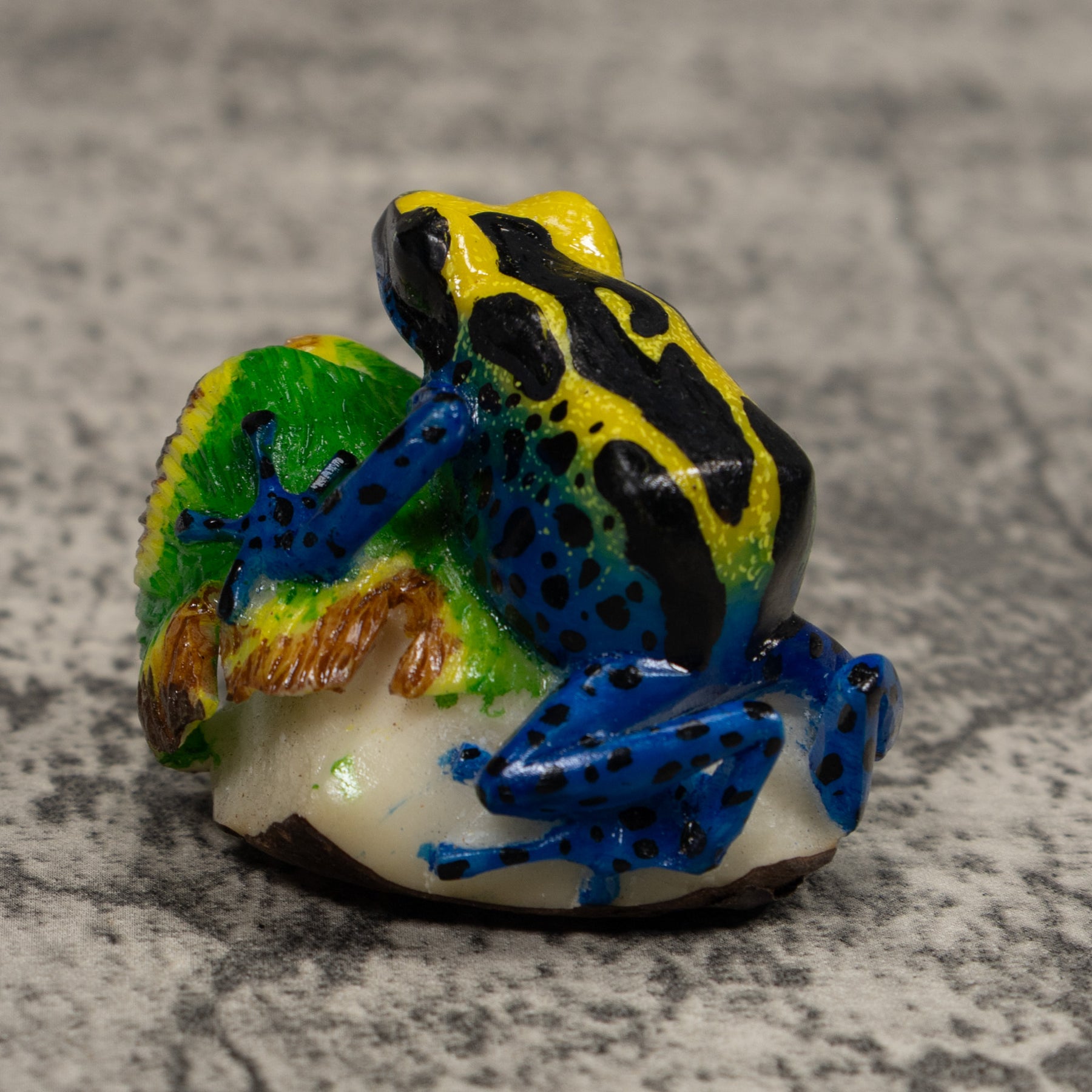 Hand carved from sustainably harvested tagua nut, often called “vegetable ivory”, this charming Frog celebrates the rich biodiversity of the Latin American rainforest. Each small sculpture is created by skilled artisans in Panama who carefully shape and polish the natural nut before bringing the animal to life with detailed hand painting. Every piece is made by our artisan partners for TraderBrock, helping support traditional craft and fair, long term relationships with local makers.