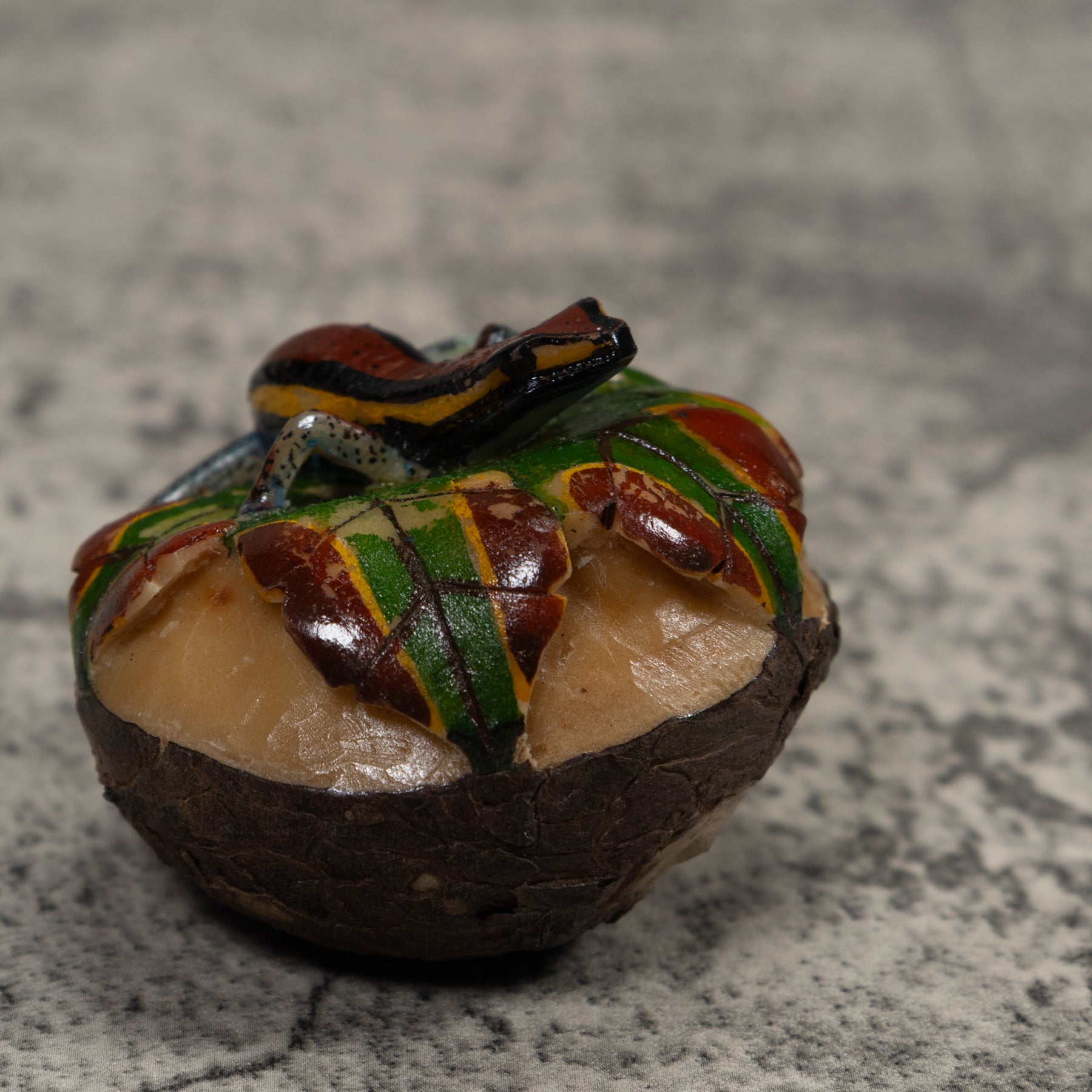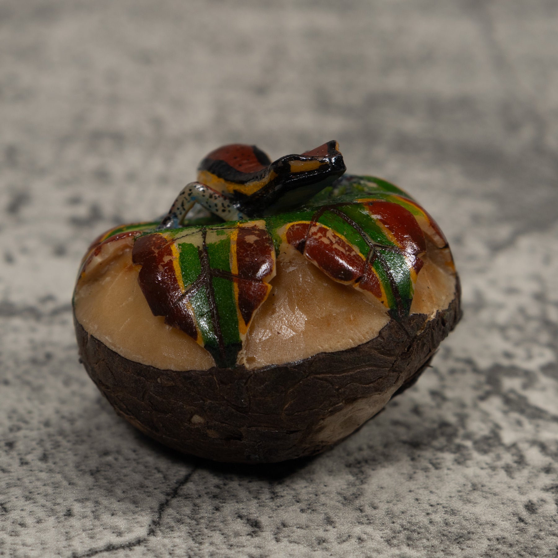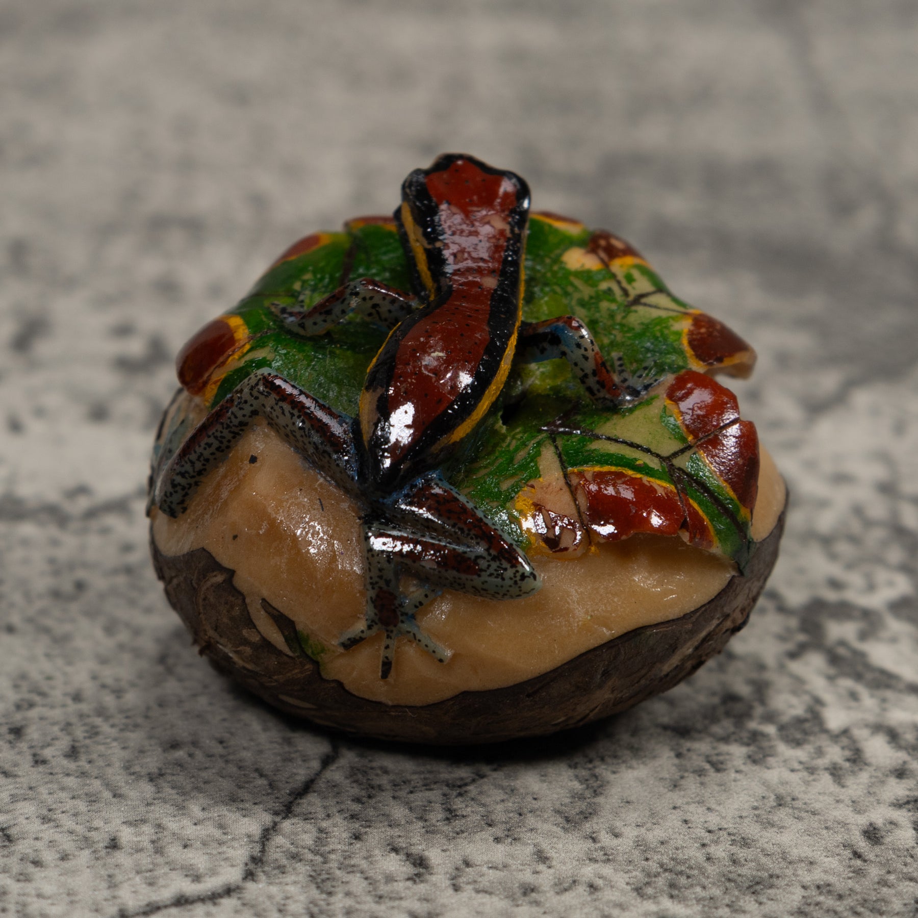 Hand carved from sustainably harvested tagua nut, often called “vegetable ivory”, this charming Frog celebrates the rich biodiversity of the Latin American rainforest. Each small sculpture is created by skilled artisans in Panama who carefully shape and polish the natural nut before bringing the animal to life with detailed hand painting. Every piece is made by our artisan partners for TraderBrock, helping support traditional craft and fair, long term relationships with local makers.