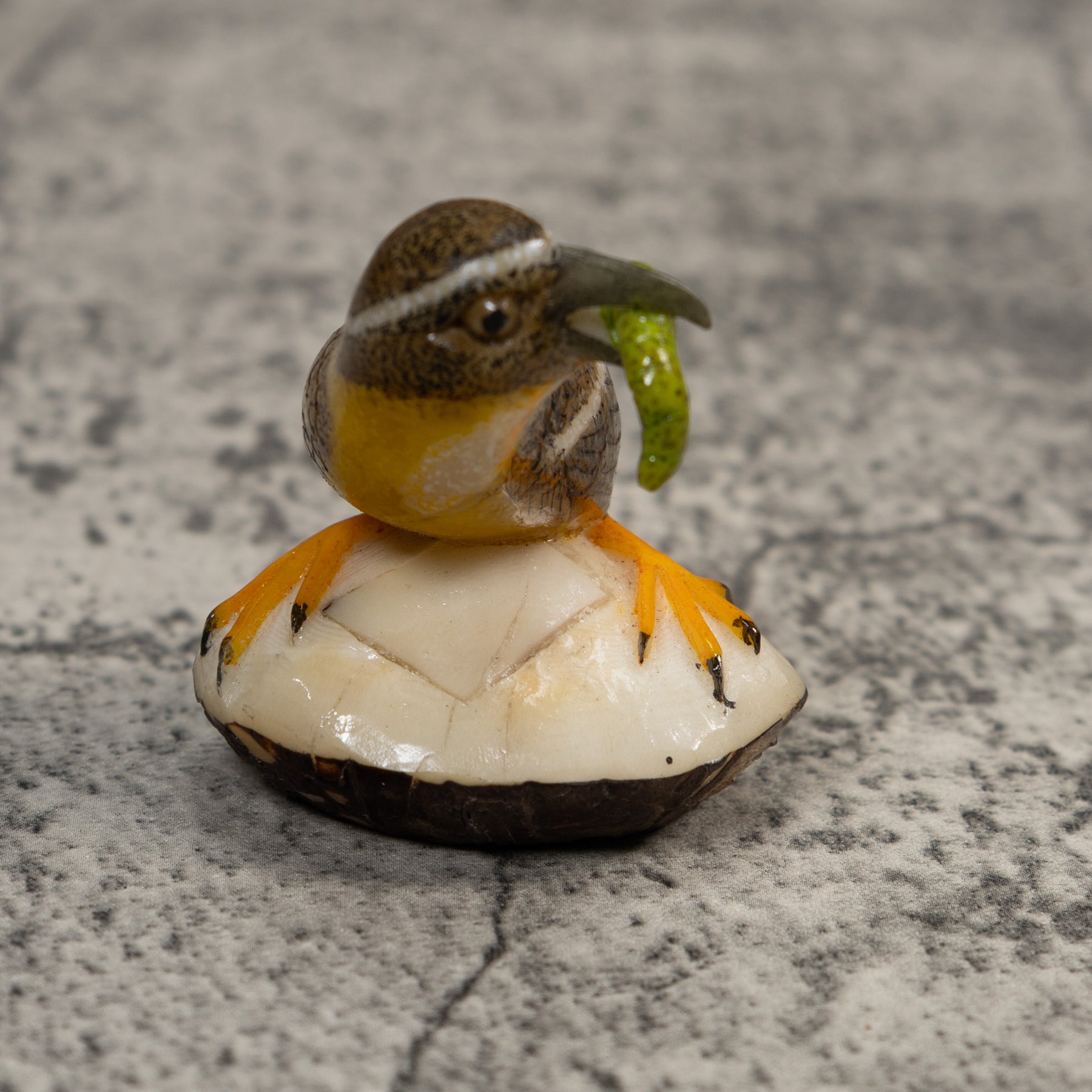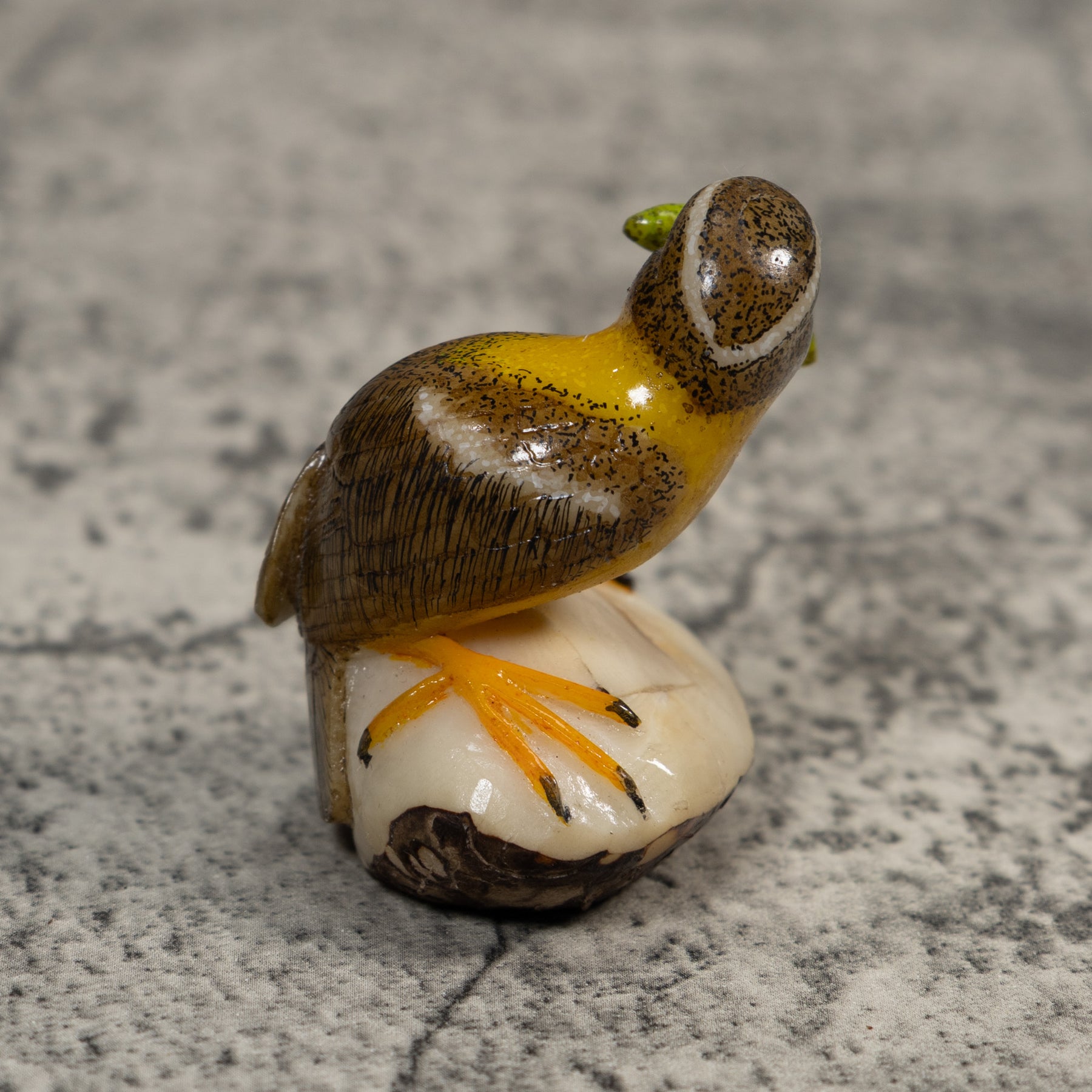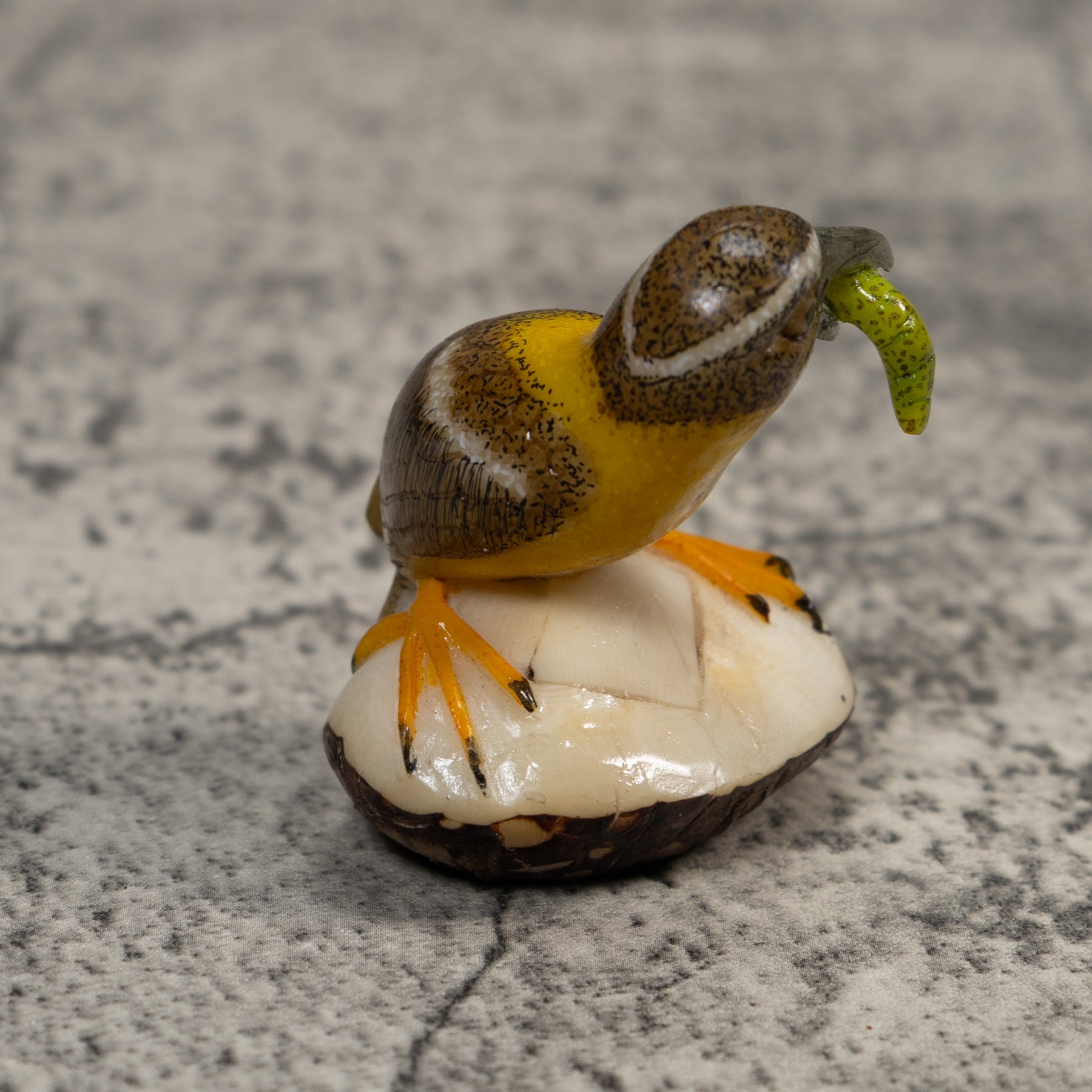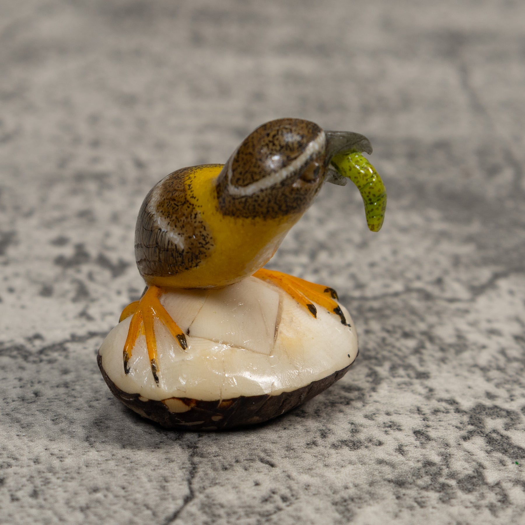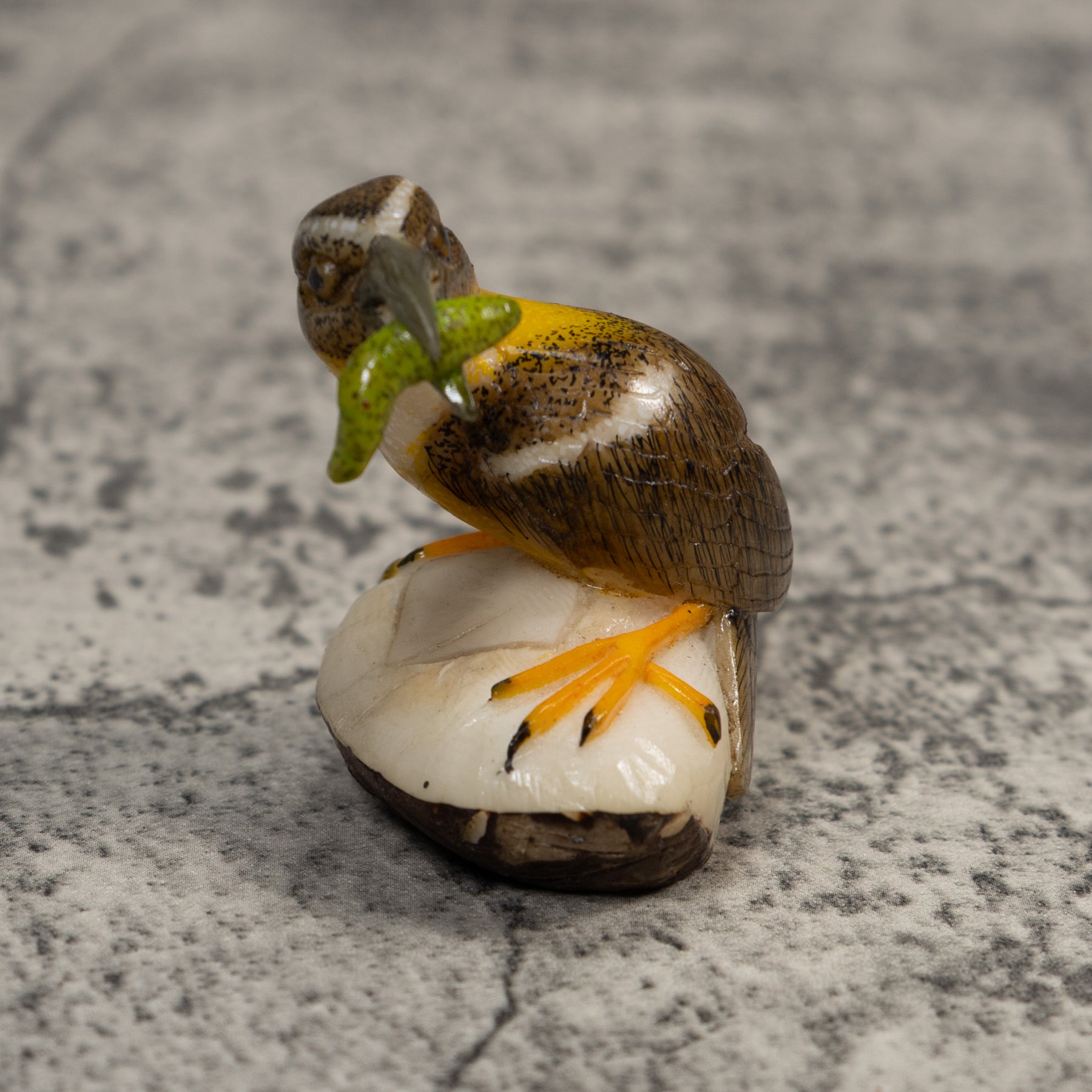 Signed Bird With Caterpillar Tagua Carving