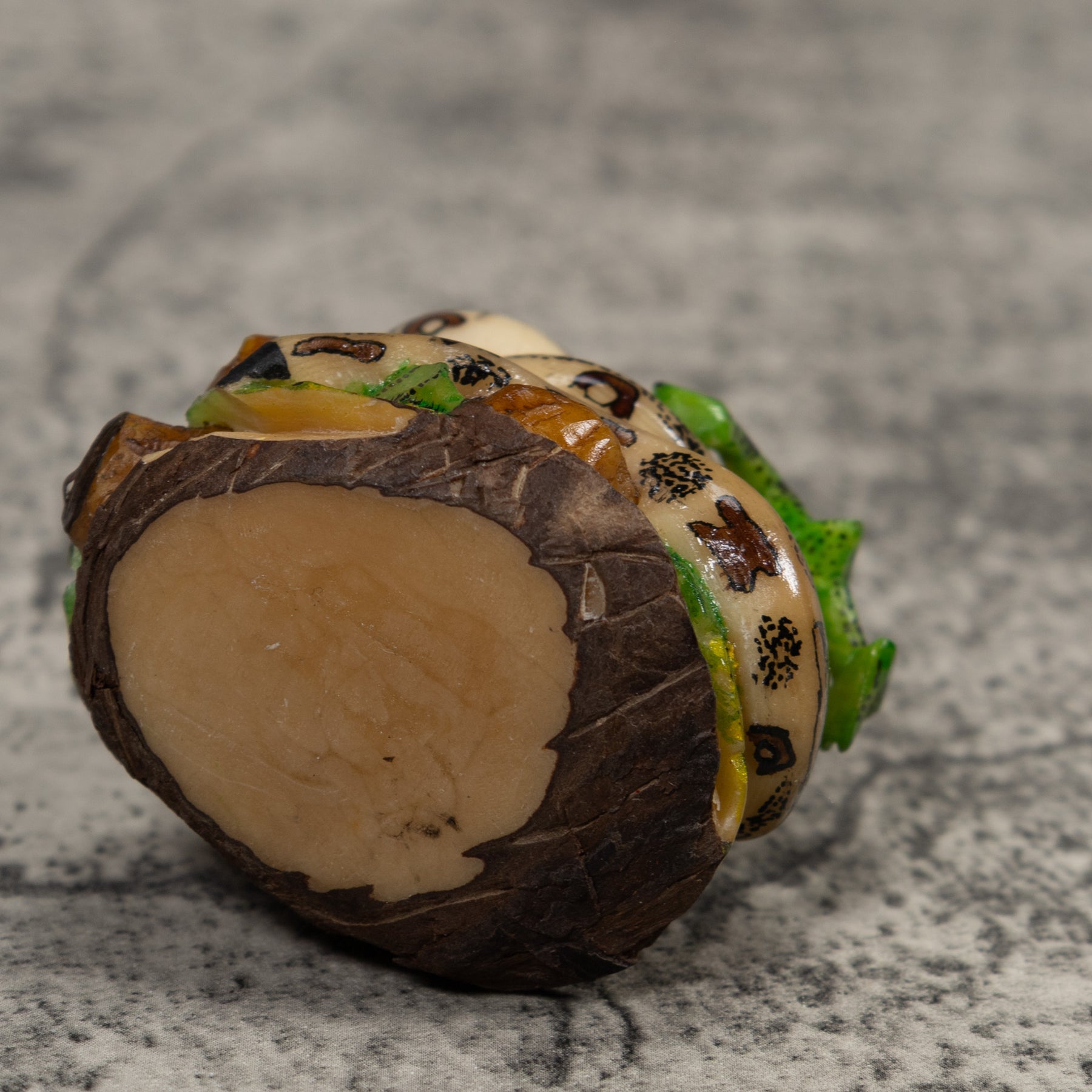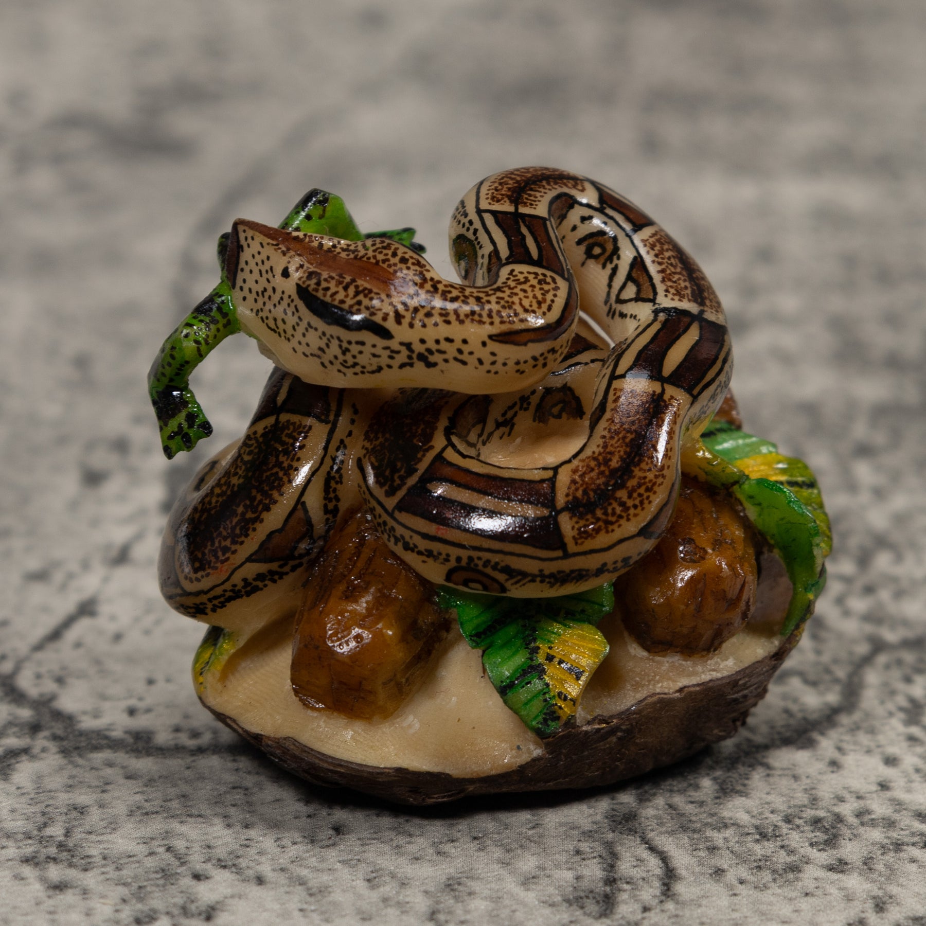 Hand carved from sustainably harvested tagua nut, often called “vegetable ivory”, this charming Frog Snake celebrates the rich biodiversity of the Latin American rainforest. Each small sculpture is created by skilled artisans in Panama who carefully shape and polish the natural nut before bringing the animal to life with detailed hand painting. Every piece is made by our artisan partners for TraderBrock, helping support traditional craft and fair, long term relationships with local makers.