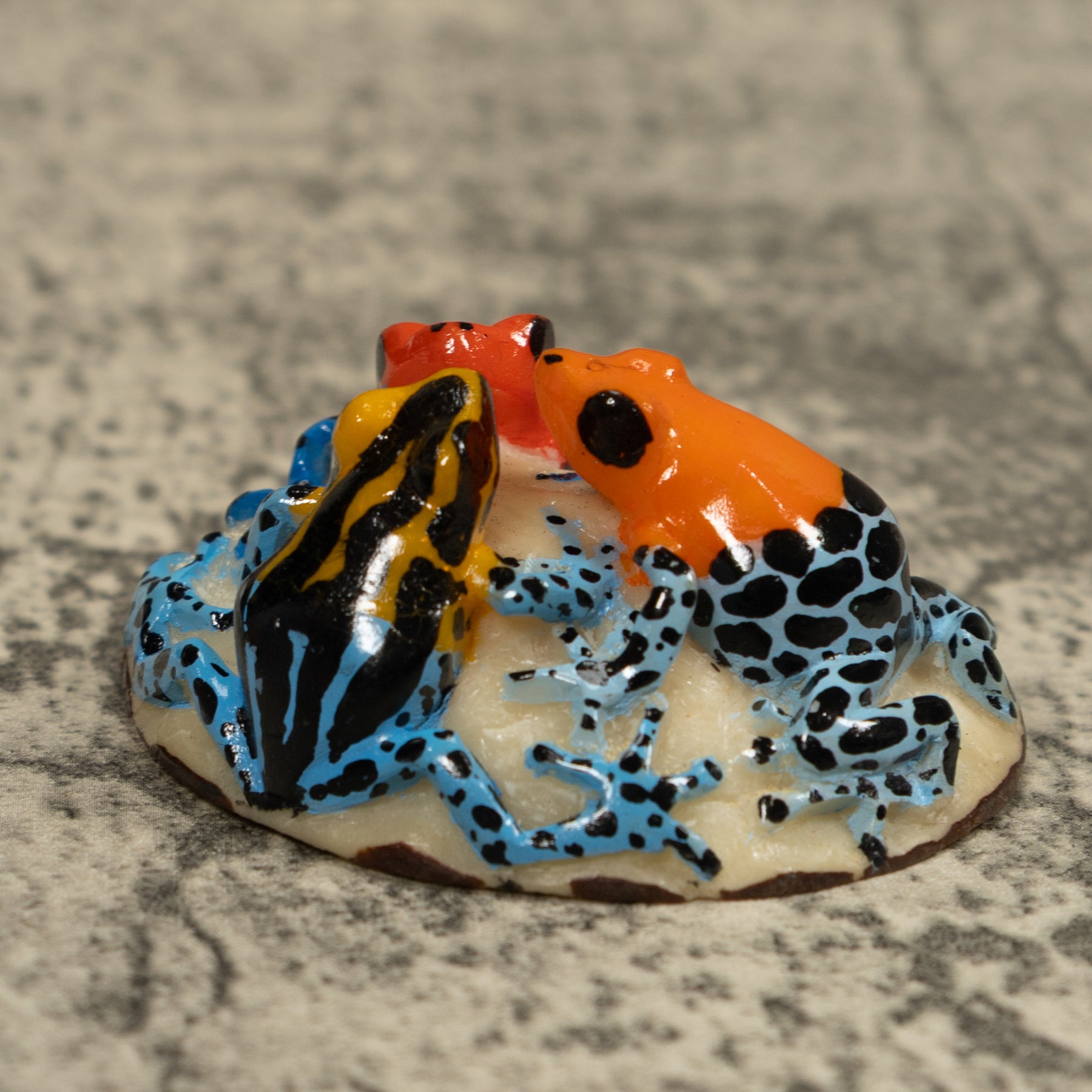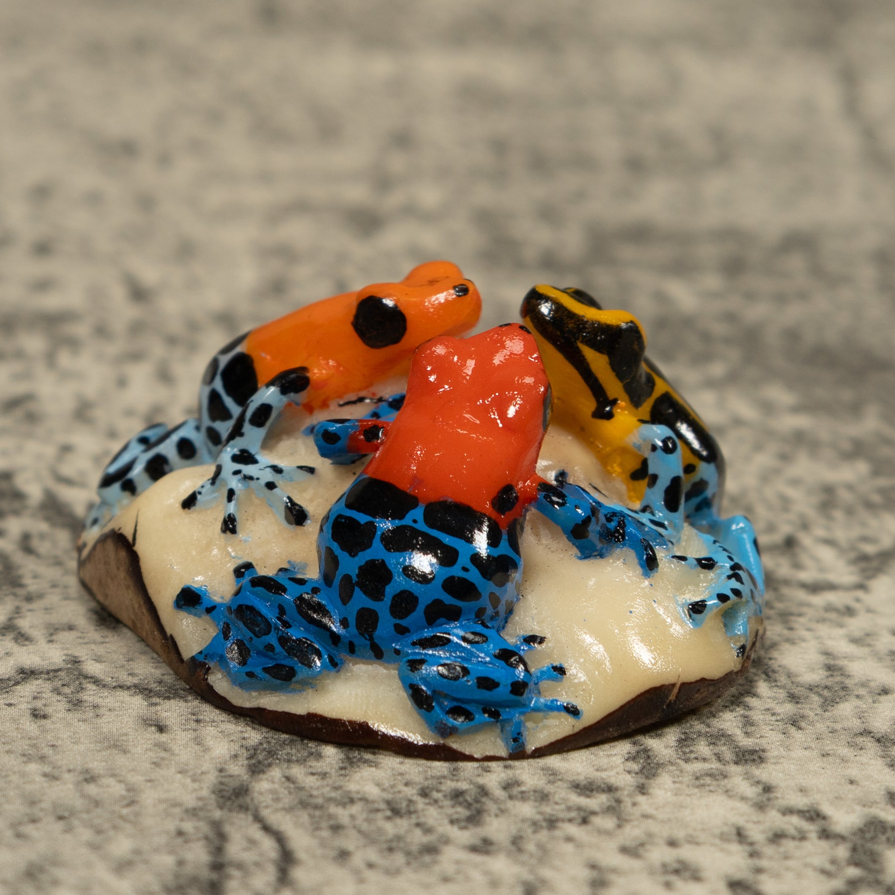 Hand carved from sustainably harvested tagua nut, often called “vegetable ivory”, this charming Triple Poison Dart Frog Tagua Carving celebrates the rich biodiversity of the Latin American rainforest. Each small sculpture is created by skilled artisans in Panama who carefully shape and polish the natural nut before bringing the animal to life with detailed hand painting. Every piece is made by our artisan partners for TraderBrock, helping support traditional craft and fair, long term relationships with local makers.