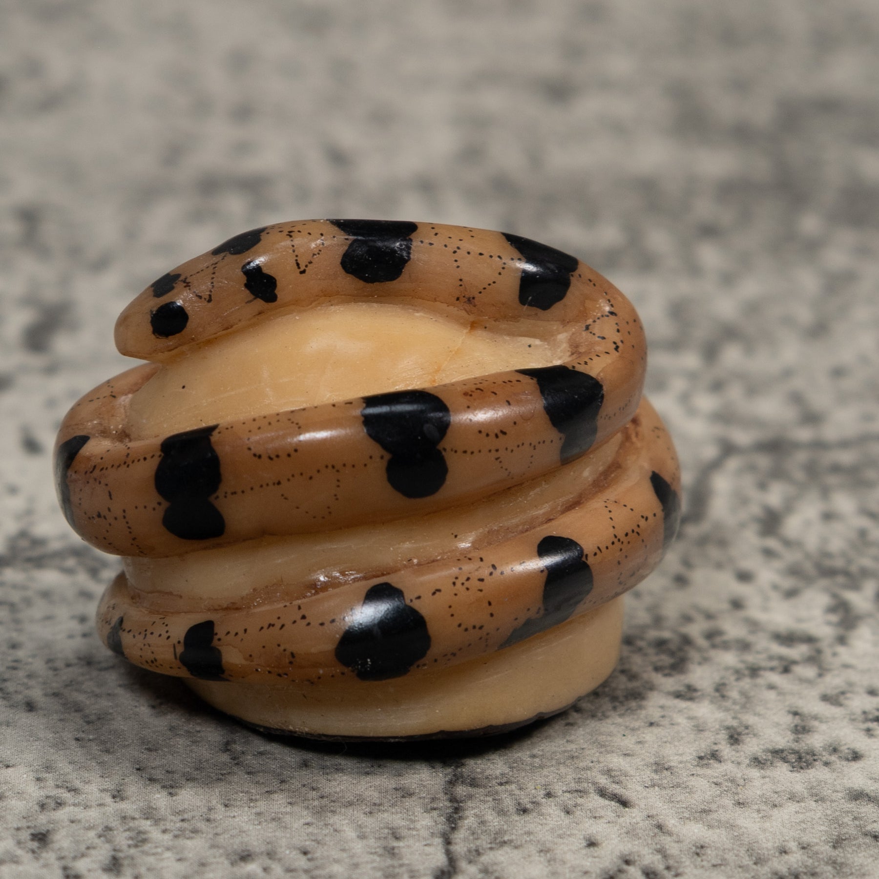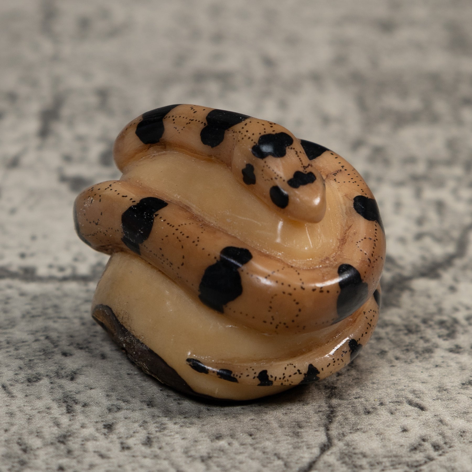Hand carved from sustainably harvested tagua nut, often called “vegetable ivory”, this charming Snake celebrates the rich biodiversity of the Latin American rainforest. Each small sculpture is created by skilled artisans in Panama who carefully shape and polish the natural nut before bringing the animal to life with detailed hand painting. Every piece is made by our artisan partners for TraderBrock, helping support traditional craft and fair, long term relationships with local makers.