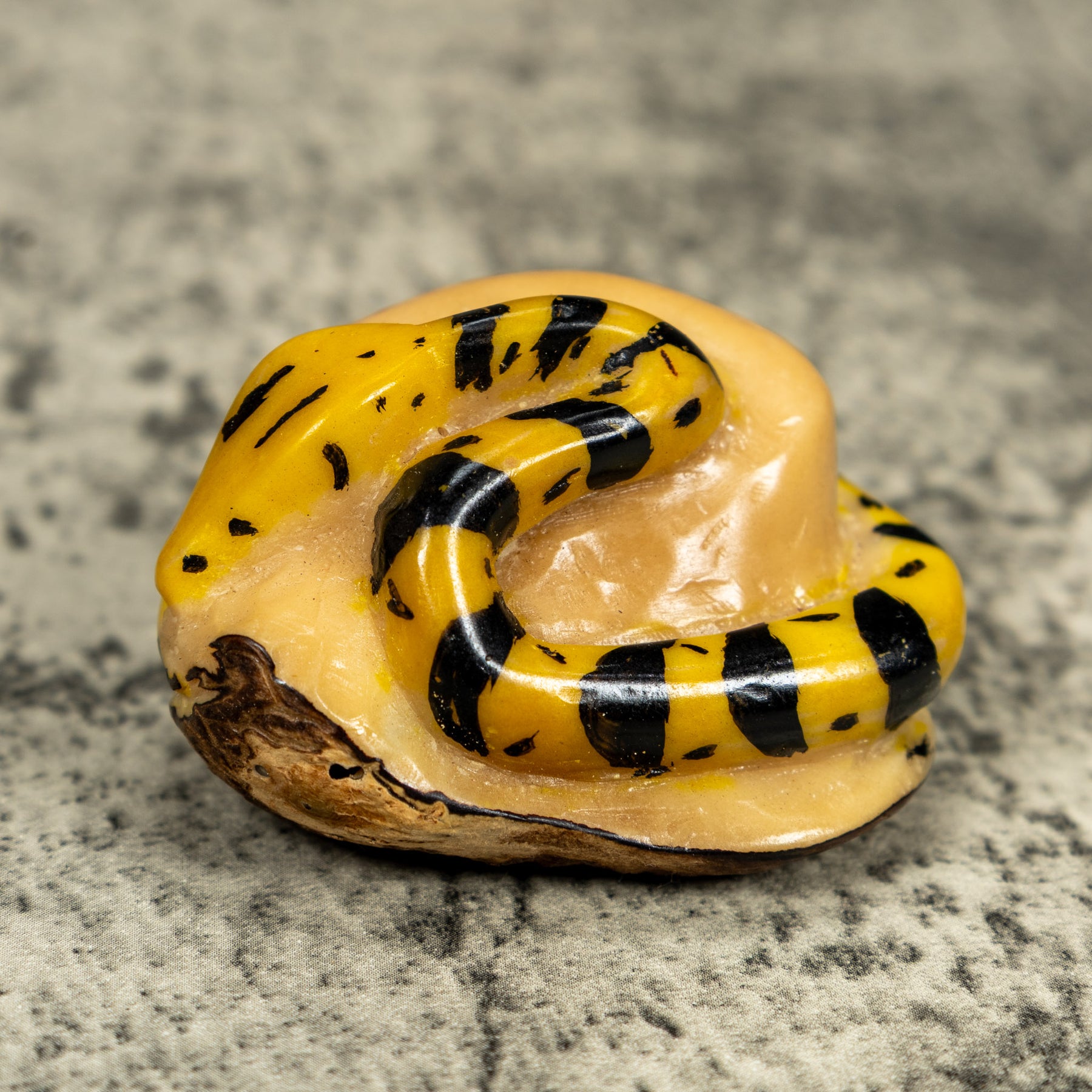 Hand carved from sustainably harvested tagua nut, often called “vegetable ivory”, this charming Snake celebrates the rich biodiversity of the Latin American rainforest. Each small sculpture is created by skilled artisans in Panama who carefully shape and polish the natural nut before bringing the animal to life with detailed hand painting. Every piece is made by our artisan partners for TraderBrock, helping support traditional craft and fair, long term relationships with local makers.