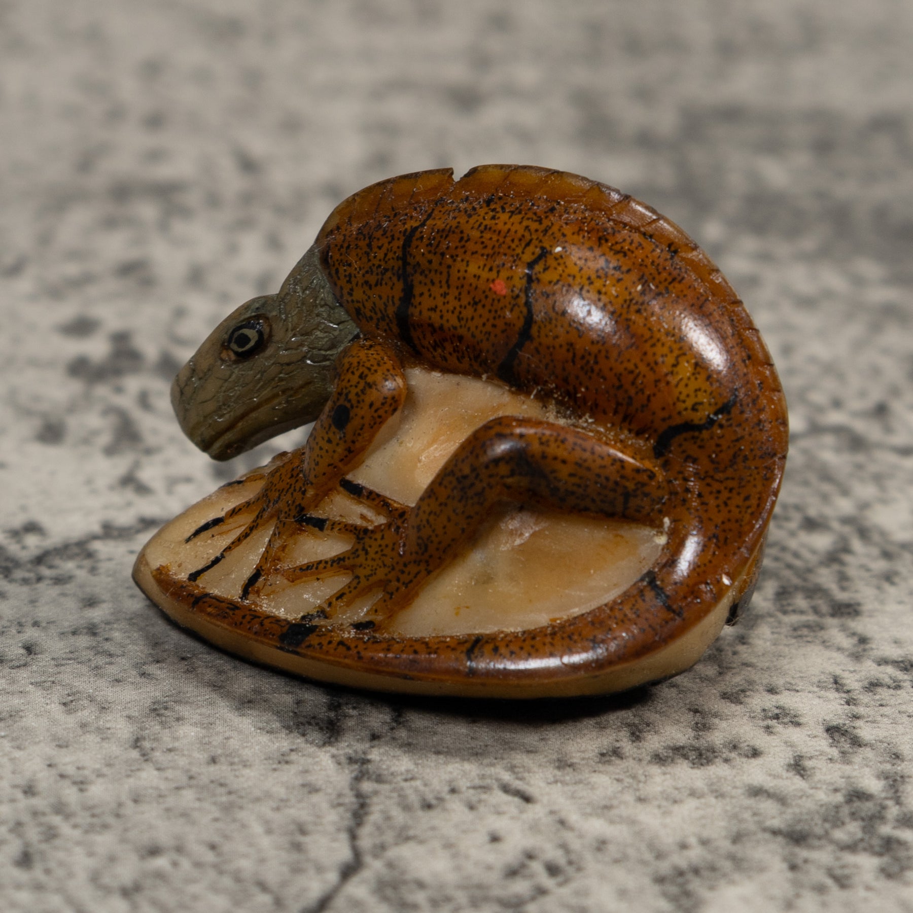 Vintage Brown Iguana Lizard Tagua Carving