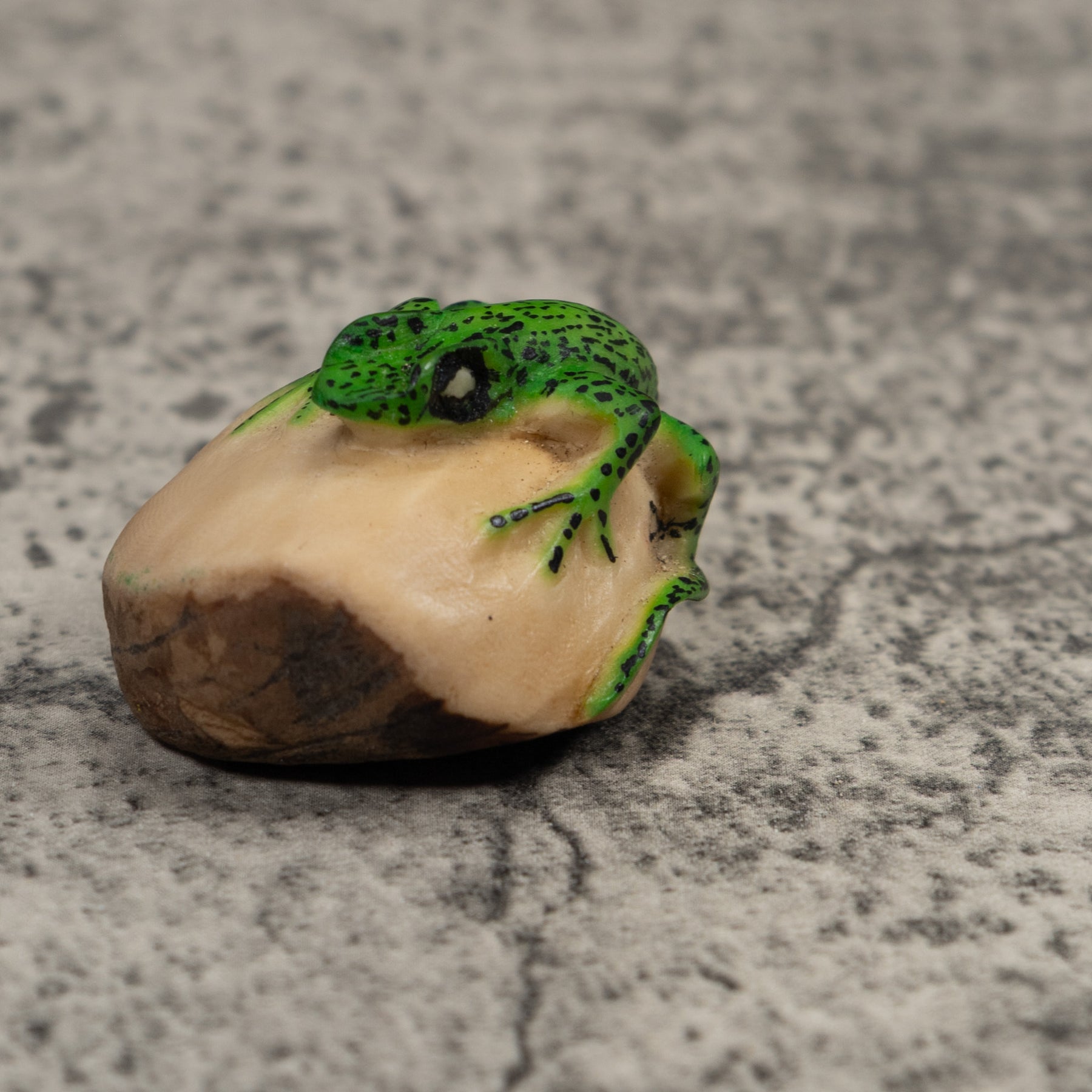 Hand carved from sustainably harvested tagua nut, often called “vegetable ivory”, this charming Frog celebrates the rich biodiversity of the Latin American rainforest. Each small sculpture is created by skilled artisans in Panama who carefully shape and polish the natural nut before bringing the animal to life with detailed hand painting. Every piece is made by our artisan partners for TraderBrock, helping support traditional craft and fair, long term relationships with local makers.