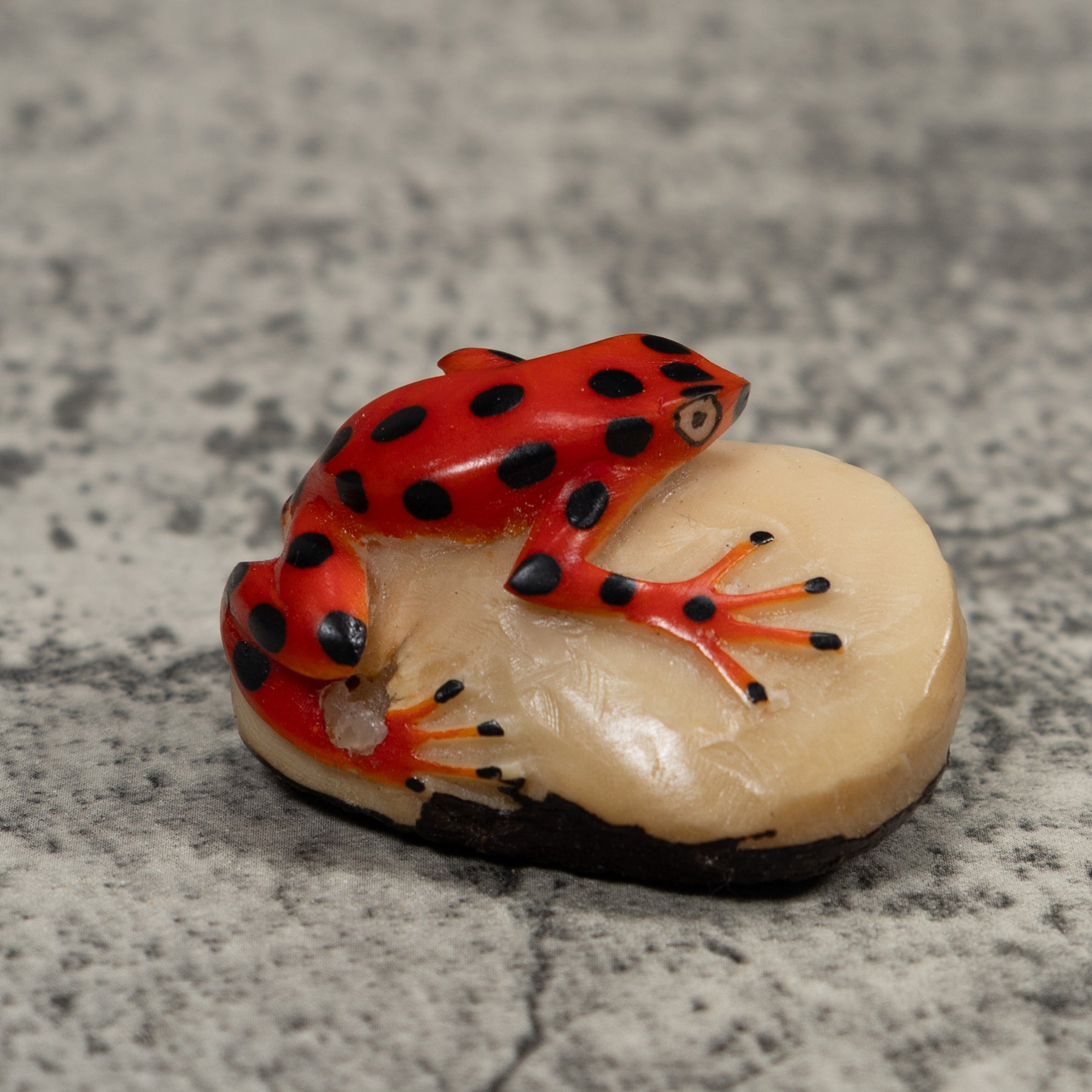 Hand carved from sustainably harvested tagua nut, often called “vegetable ivory”, this charming Frog celebrates the rich biodiversity of the Latin American rainforest. Each small sculpture is created by skilled artisans in Panama who carefully shape and polish the natural nut before bringing the animal to life with detailed hand painting. Every piece is made by our artisan partners for TraderBrock, helping support traditional craft and fair, long term relationships with local makers.