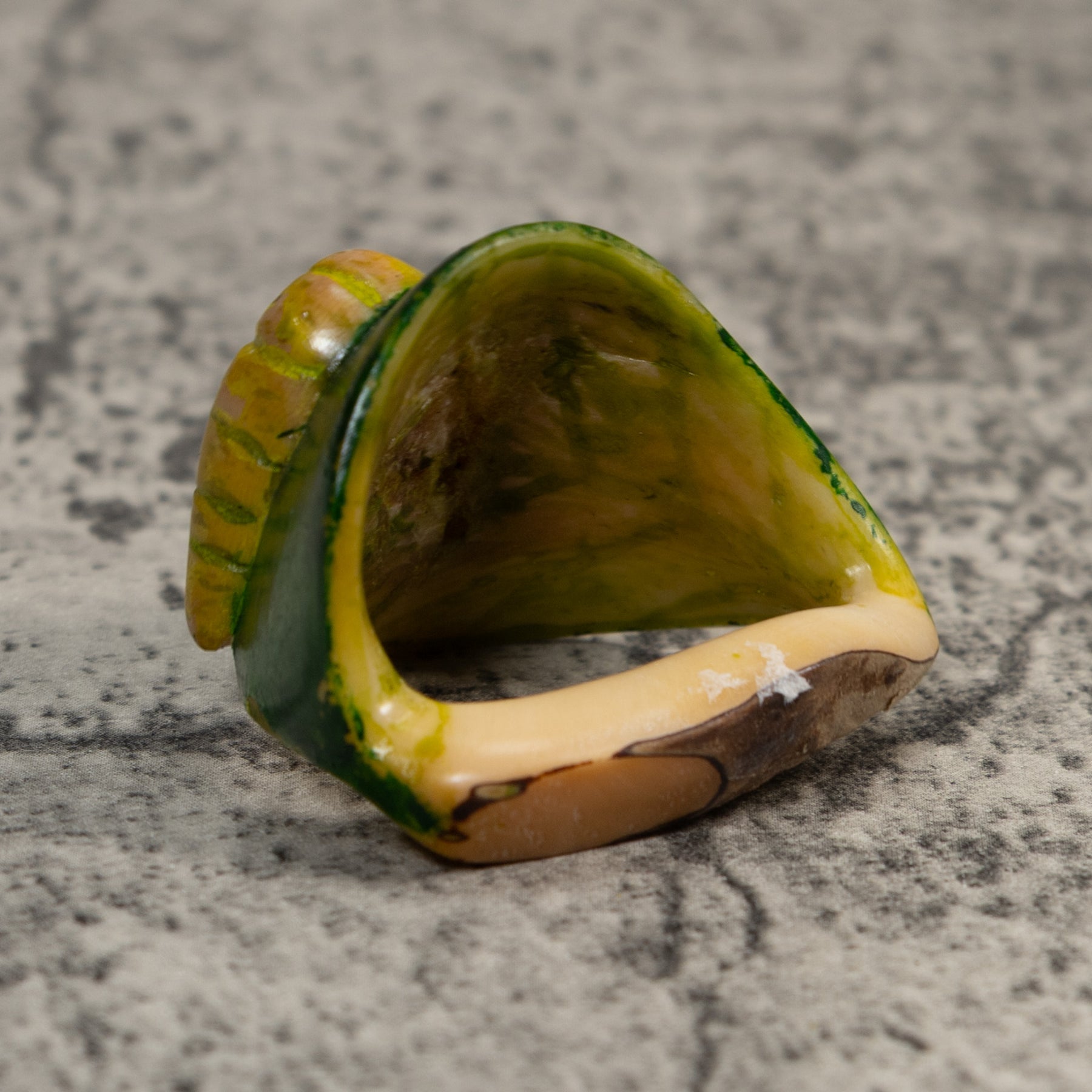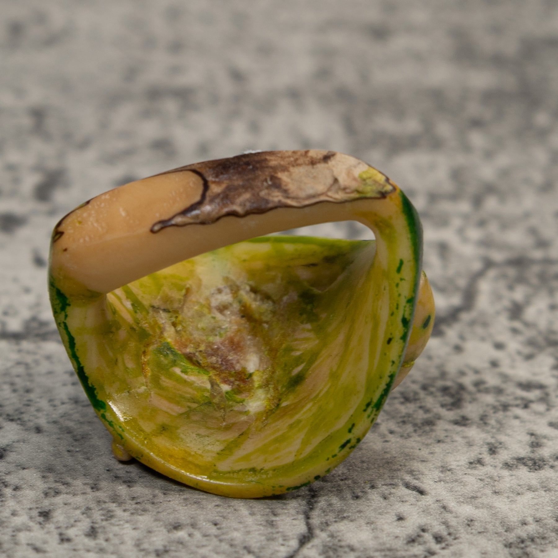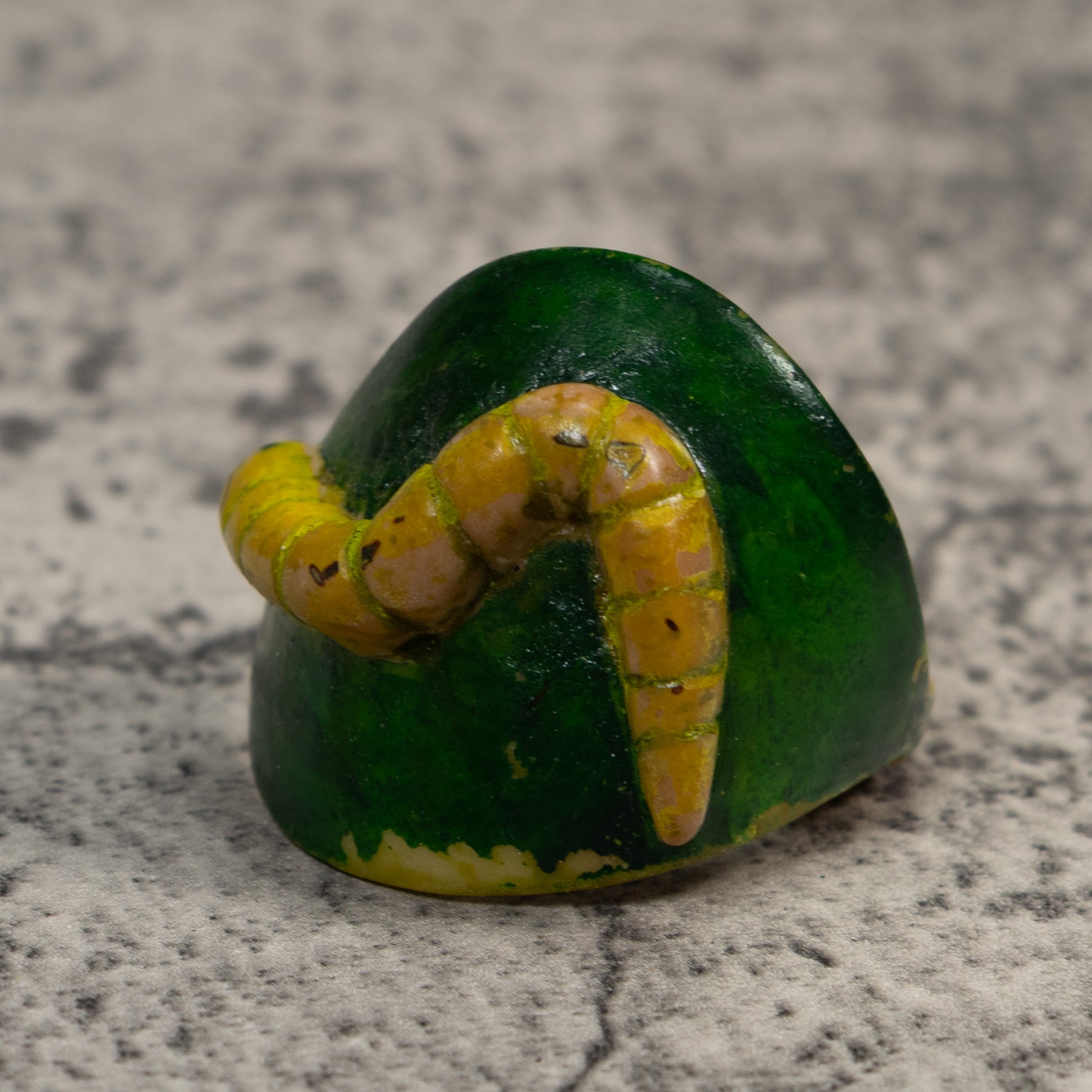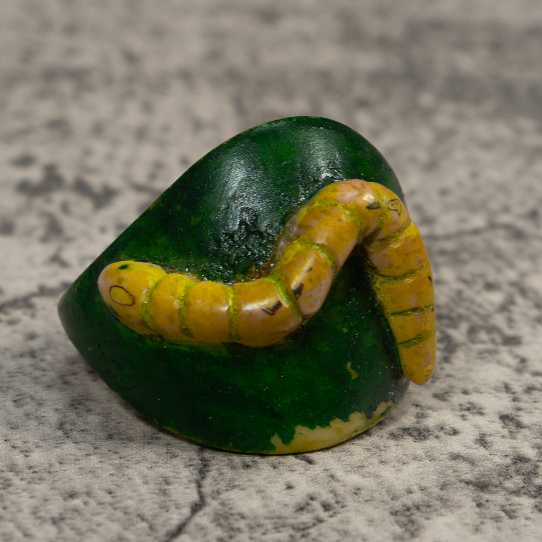Vintage Green And Yellow Caterpillar Tagua Carving