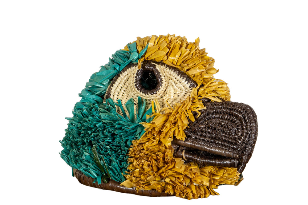 This intricately handwoven Blue and Yellow Macaw Mask is the perfect addition to any wall. The beautiful colors and patterns are eye-catching and will liven up any room. Not to mention, it's a great conversation starter! The mask is also Fair Trade, so you can feel good about your purchase knowing that you are directly contributing to the Indigenous artisan community of Panama.