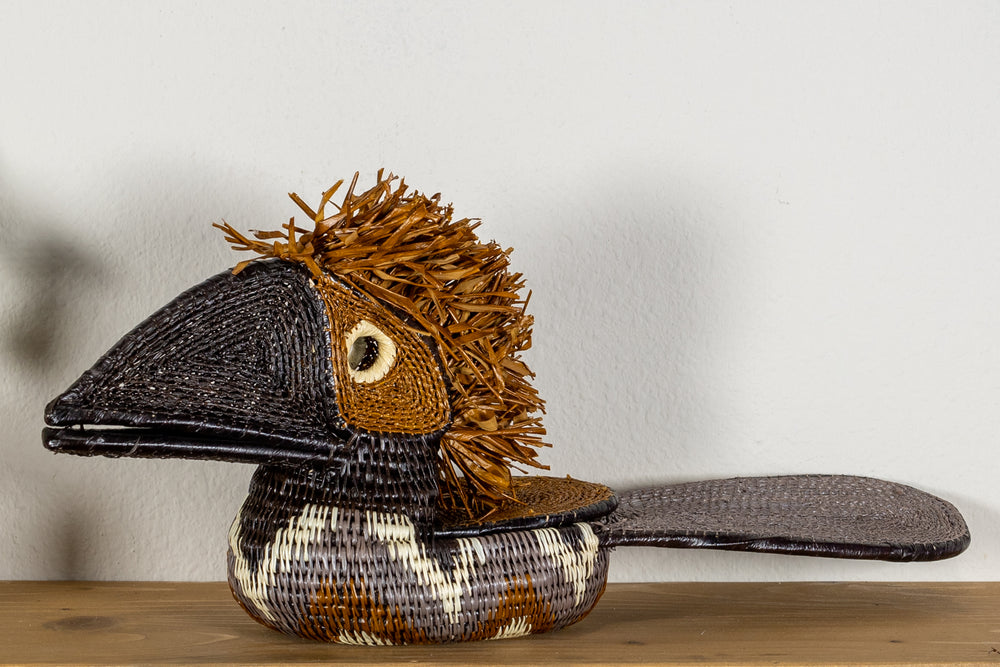 This intricately handwoven Multi-Color Toucan Parrot mask is the perfect addition to any wall. The beautiful colors and patterns are eye-catching and will liven up any room. Not to mention, it's a great conversation starter! The mask is also Fair Trade, so you can feel good about your purchase knowing that you are directly contributing to the Indigenous artisan community of Panama.