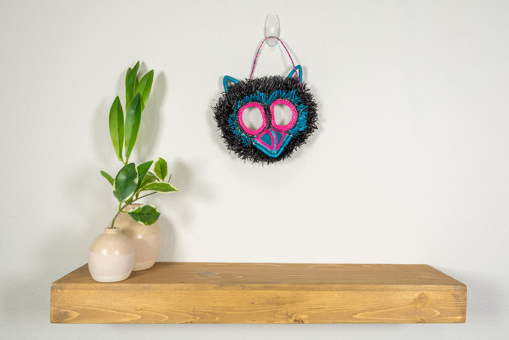 This intricately handwoven Neon Eyes Owl Mask is the perfect addition to any wall. The beautiful colors and patterns are eye-catching and will liven up any room. Not to mention, it's a great conversation starter! The mask is also Fair Trade, so you can feel good about your purchase knowing that you are directly contributing to the Indigenous artisan community of Panama.