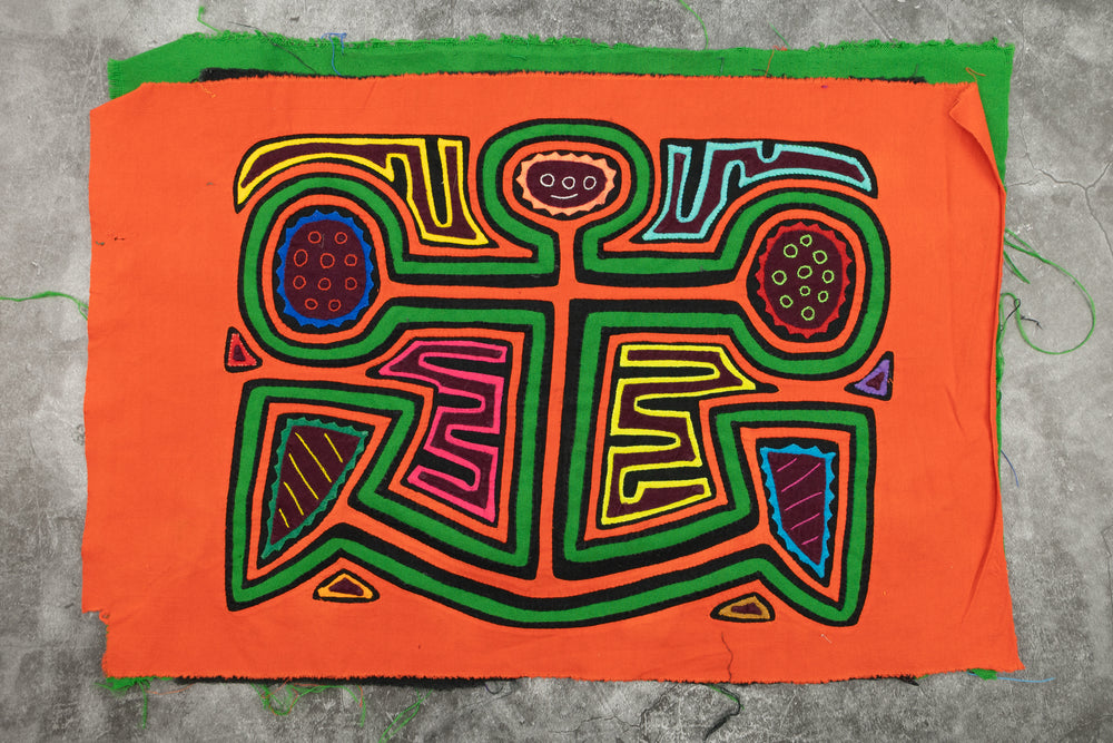 TRADITIONAL CONSTRUCTION & DESIGN: Molas are hand-made using a reverse appliqué technique using several layers of different colored cloth. The largest pattern is typically cut from the top layer and smaller patterns from each underlying layer. Geometric molas are the most traditional. Originating from ancient body paintings. Designs usually portray wildlife in the Rainforest. Inspiration comes from the nature and beauty that surrounds them.