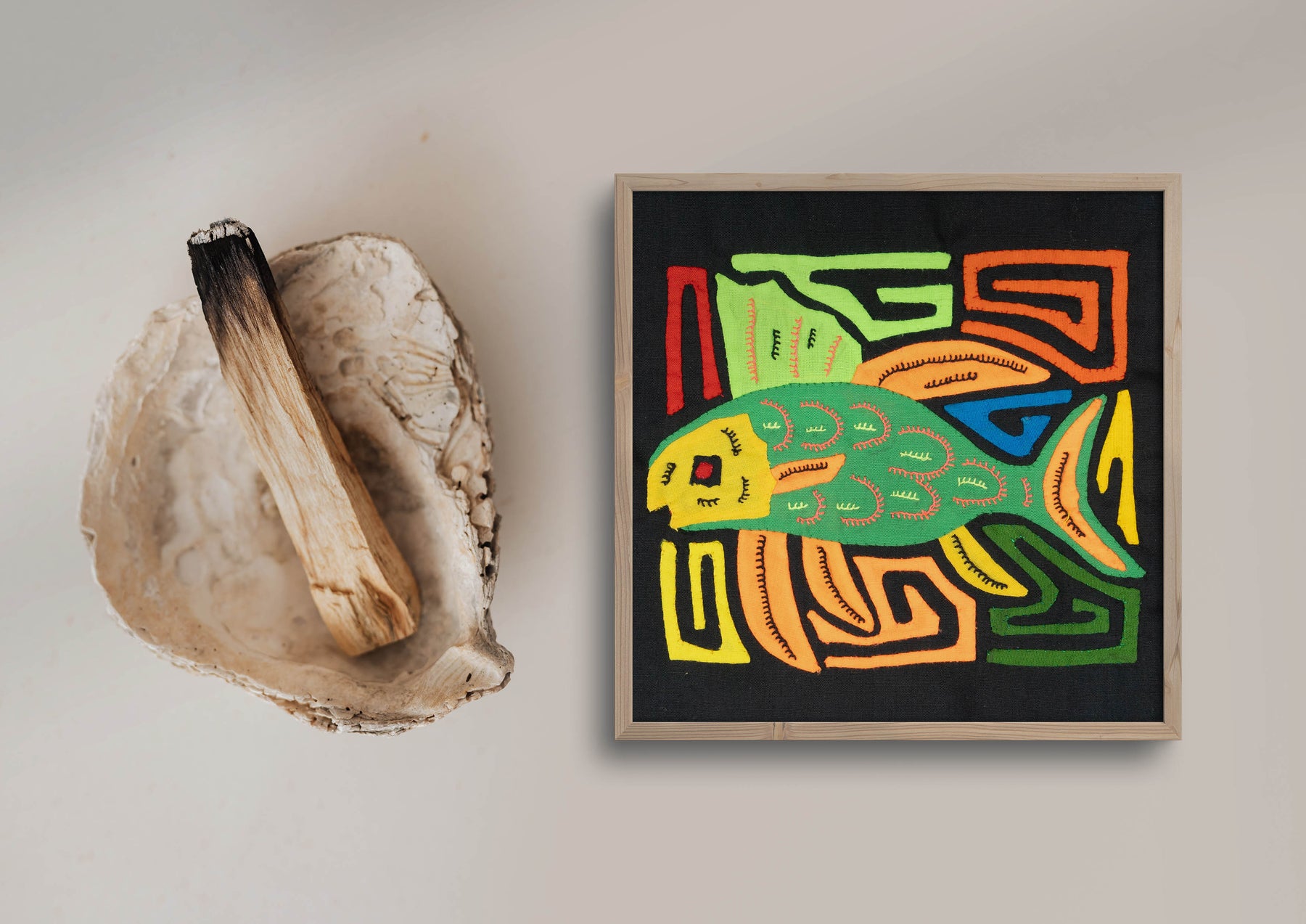 Molas often showcase animals such as birds, fish, turtles, and more. These designs can range from realistic to abstract and sometimes feature multiple animals in a single piece. Each depiction carries symbolic meaning and reflects the Guna people's deep connection to nature.