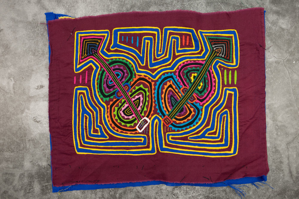 TRADITIONAL CONSTRUCTION & DESIGN: Molas are hand-made using a reverse appliqué technique using several layers of different colored cloth. The largest pattern is typically cut from the top layer and smaller patterns from each underlying layer. Geometric molas are the most traditional. Originating from ancient body paintings. Designs usually portray wildlife in the Rainforest. Inspiration comes from the nature and beauty that surrounds them.