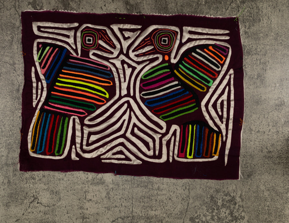 Molas often showcase animals such as birds, fish, turtles, and more. These designs can range from realistic to abstract and sometimes feature multiple animals in a single piece. Each depiction carries symbolic meaning and reflects the Guna people's deep connection to nature.
