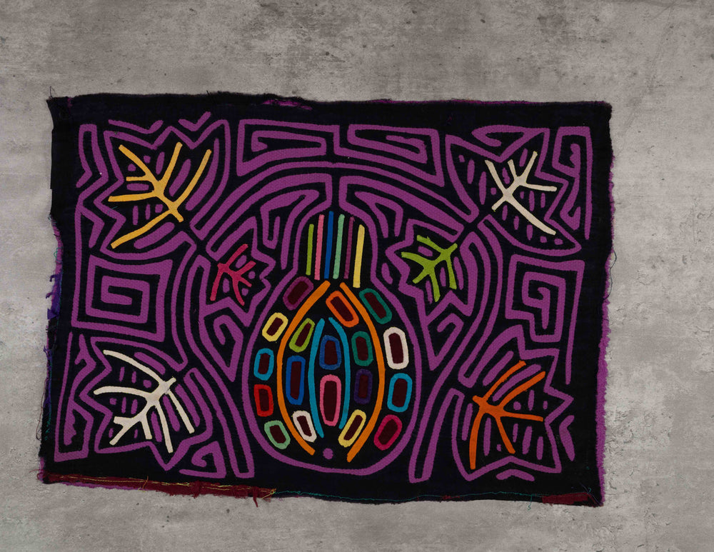 TRADITIONAL CONSTRUCTION & DESIGN: Molas are hand-made using a reverse appliqué technique using several layers of different colored cloth. The largest pattern is typically cut from the top layer and smaller patterns from each underlying layer. Geometric molas are the most traditional. Originating from ancient body paintings. Designs usually portray wildlife in the Rainforest. Inspiration comes from the nature and beauty that surrounds them.