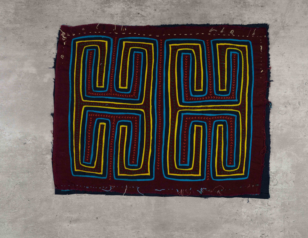 Burgundy Blue And Yellow Classic Kuna Design Mola