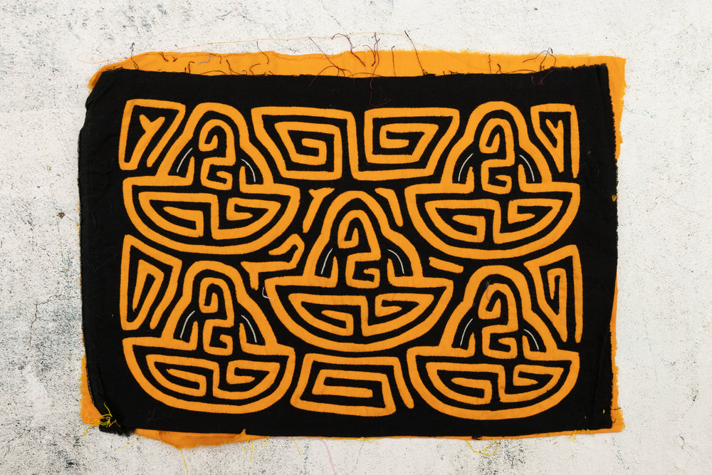 TRADITIONAL CONSTRUCTION & DESIGN: Molas are hand-made using a reverse appliqué technique using several layers of different colored cloth. The largest pattern is typically cut from the top layer and smaller patterns from each underlying layer. Geometric molas are the most traditional. Originating from ancient body paintings. Designs usually portray wildlife in the Rainforest. Inspiration comes from the nature and beauty that surrounds them.
