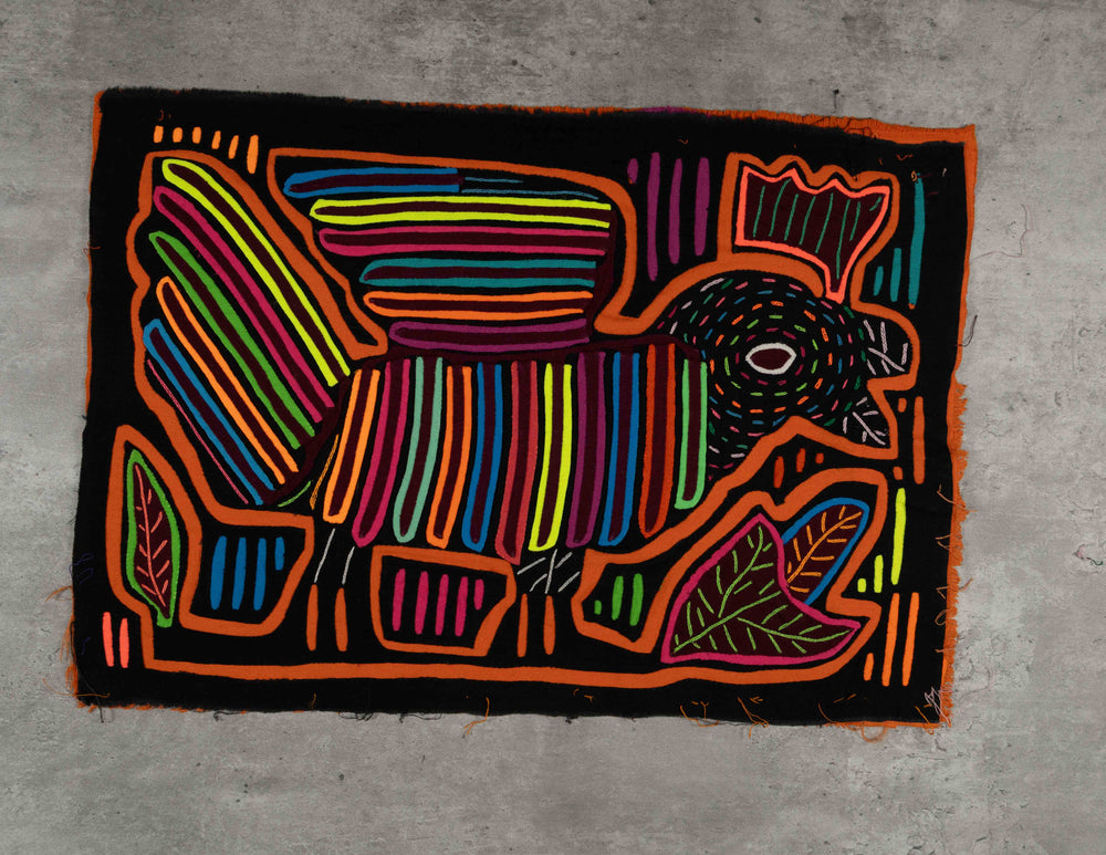 TRADITIONAL CONSTRUCTION & DESIGN: Molas are hand-made using a reverse appliqué technique using several layers of different colored cloth. The largest pattern is typically cut from the top layer and smaller patterns from each underlying layer. Geometric molas are the most traditional. Originating from ancient body paintings. Designs usually portray wildlife in the Rainforest. Inspiration comes from the nature and beauty that surrounds them.