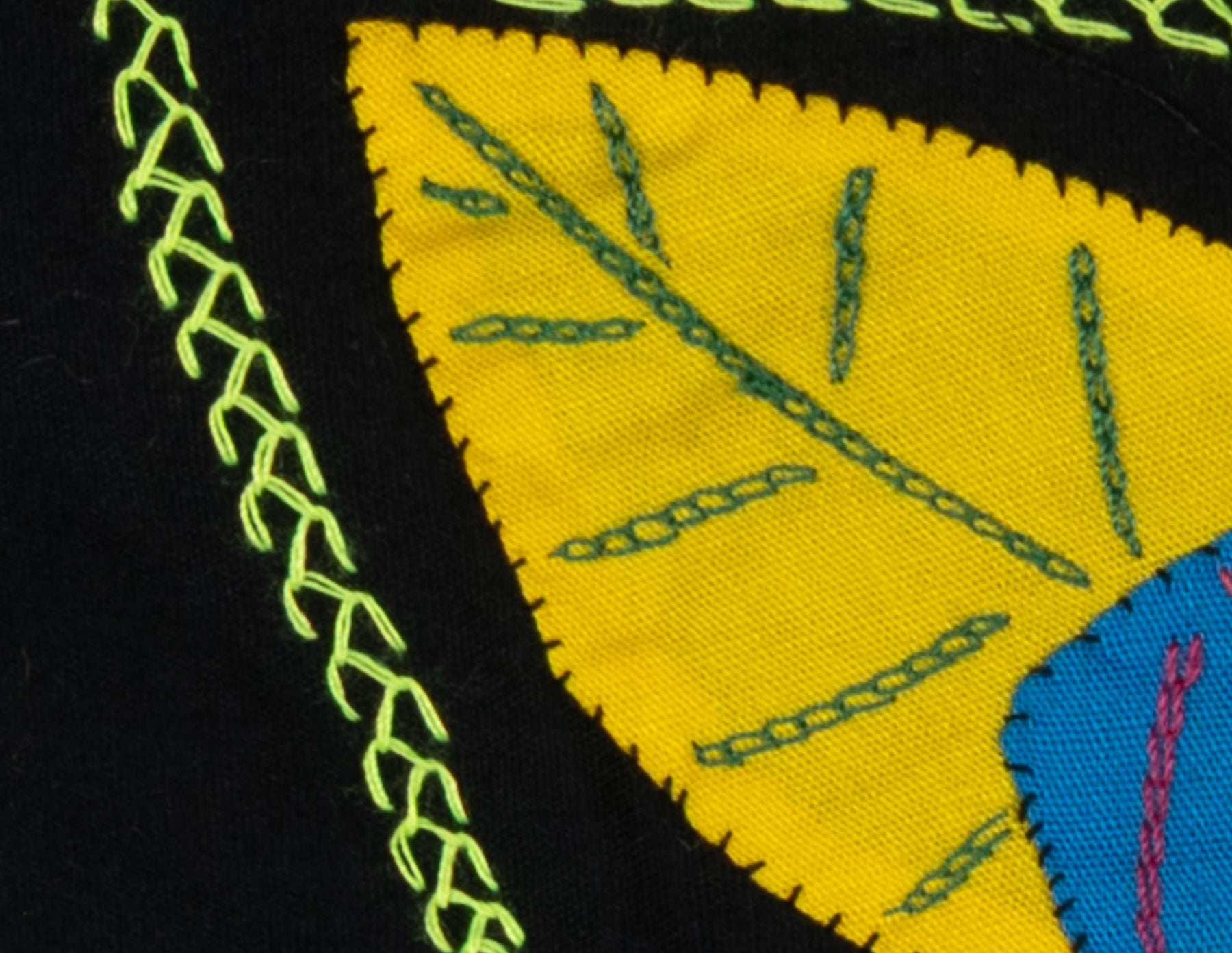 • Reverse appliqué design with layered cotton fabric and vivid colors