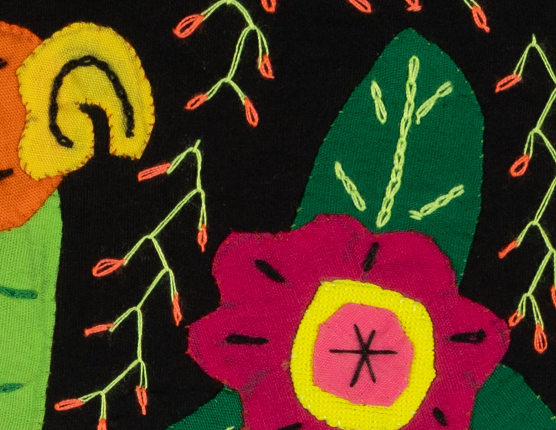 • Reverse appliqué design with layered cotton fabric and vivid colors