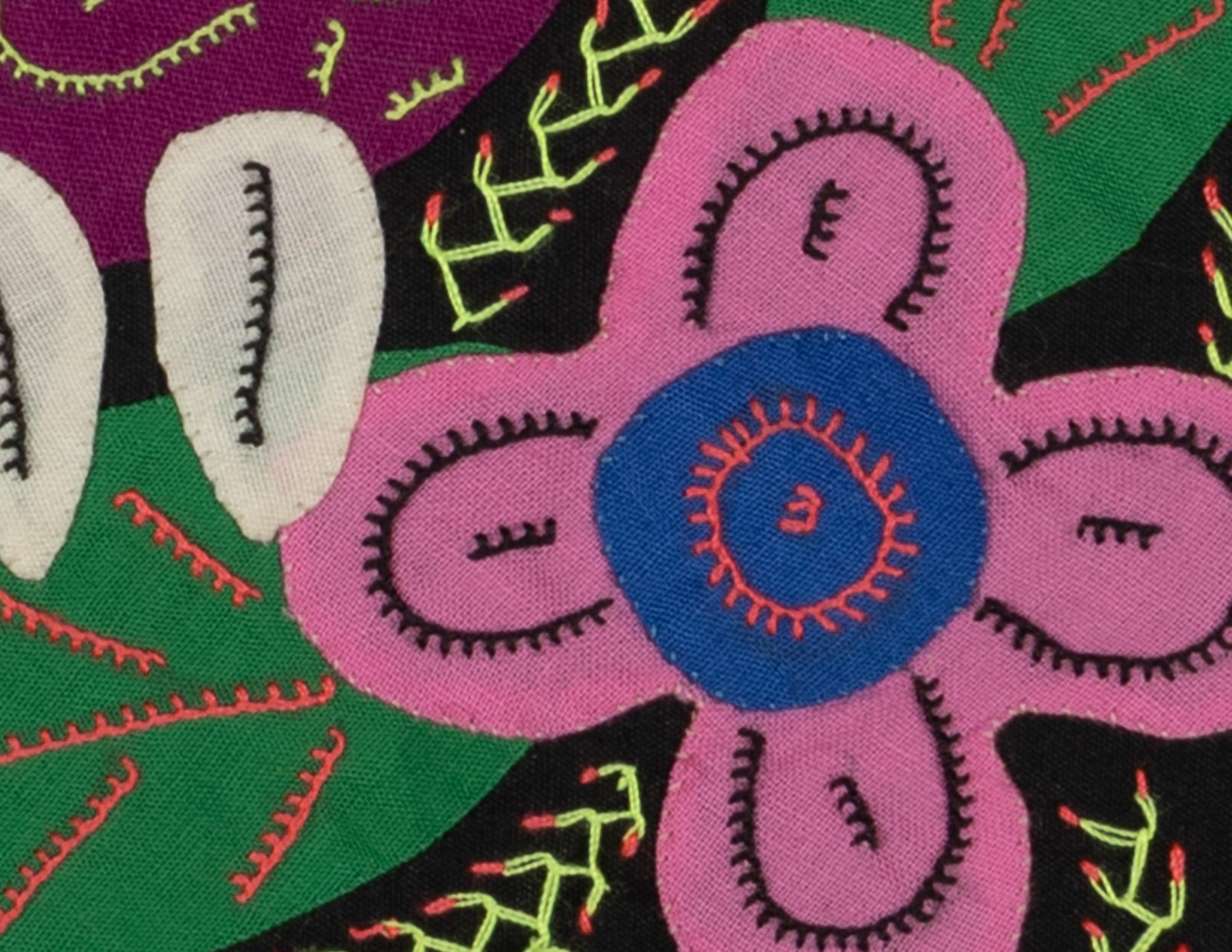 Floral molas highlight the beauty of nature through depictions of flowers, leaves, and vines. Whether stylized or realistic, these patterns often feature vivid colors and represent growth, life, and harmony with the natural world.