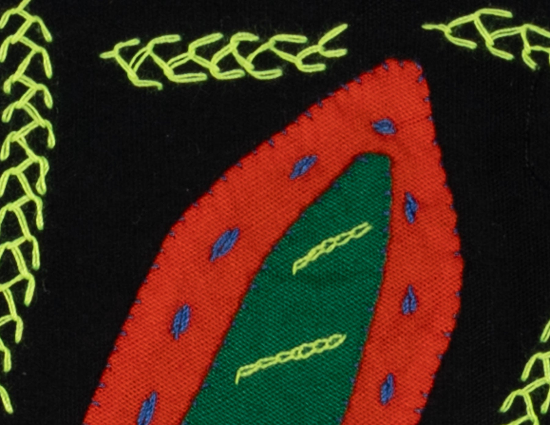 • Reverse appliqué design with layered cotton fabric and vivid colors