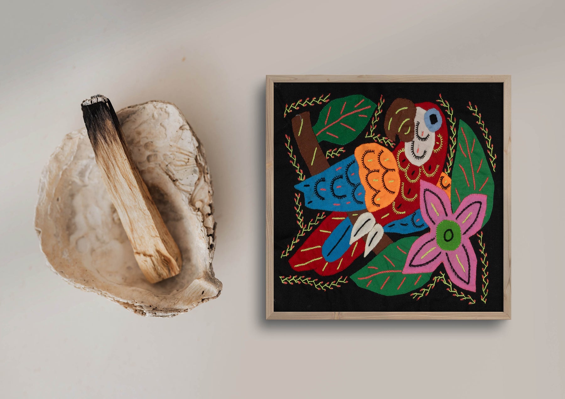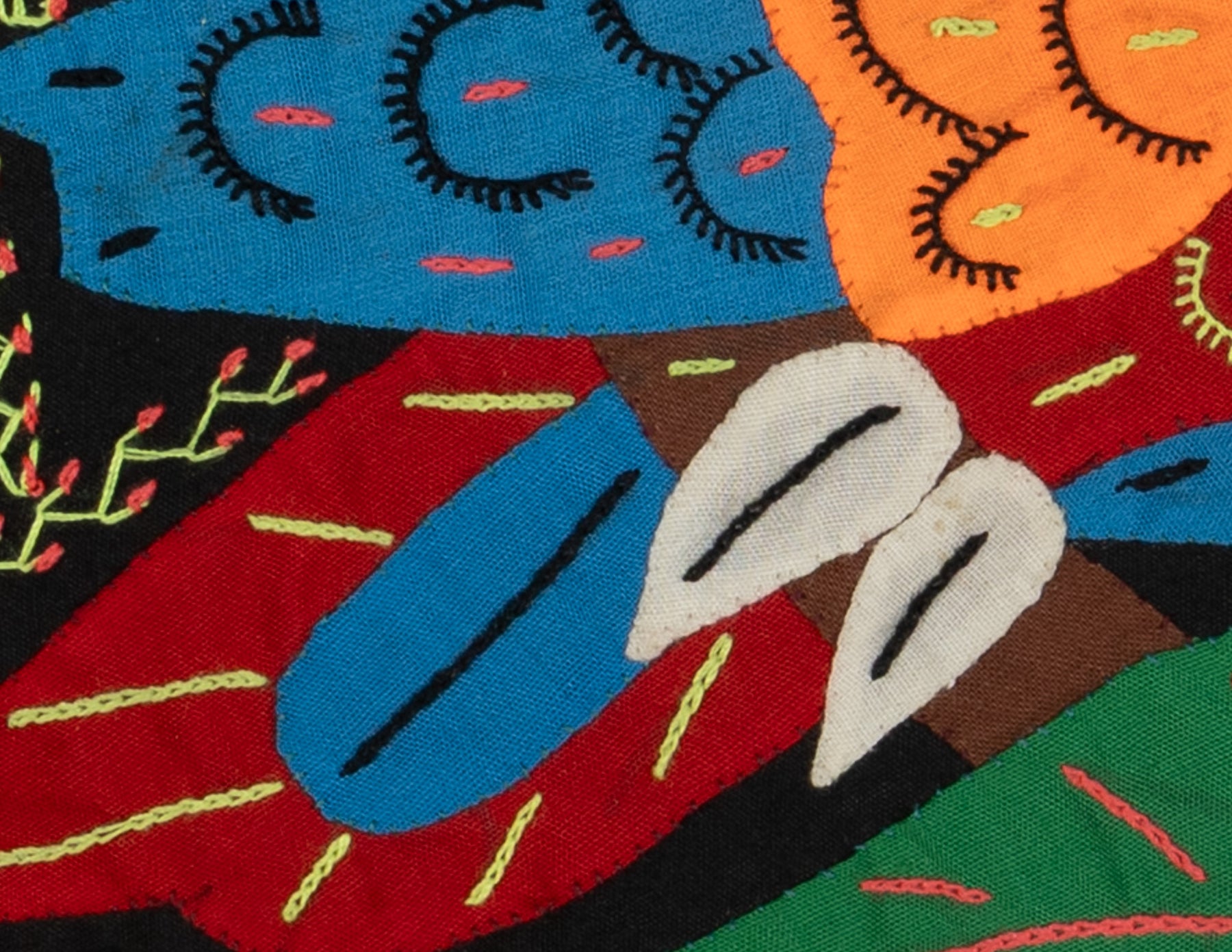 The process begins with layering vibrant cotton fabrics, which are carefully cut to reveal intricate patterns beneath. Guna artisans then use a combination of appliqué and reverse appliqué techniques, often enhancing each piece with fine hand embroidery. The result is a stunning, one-of-a-kind work of textile art rich in tradition, color, and cultural meaning.