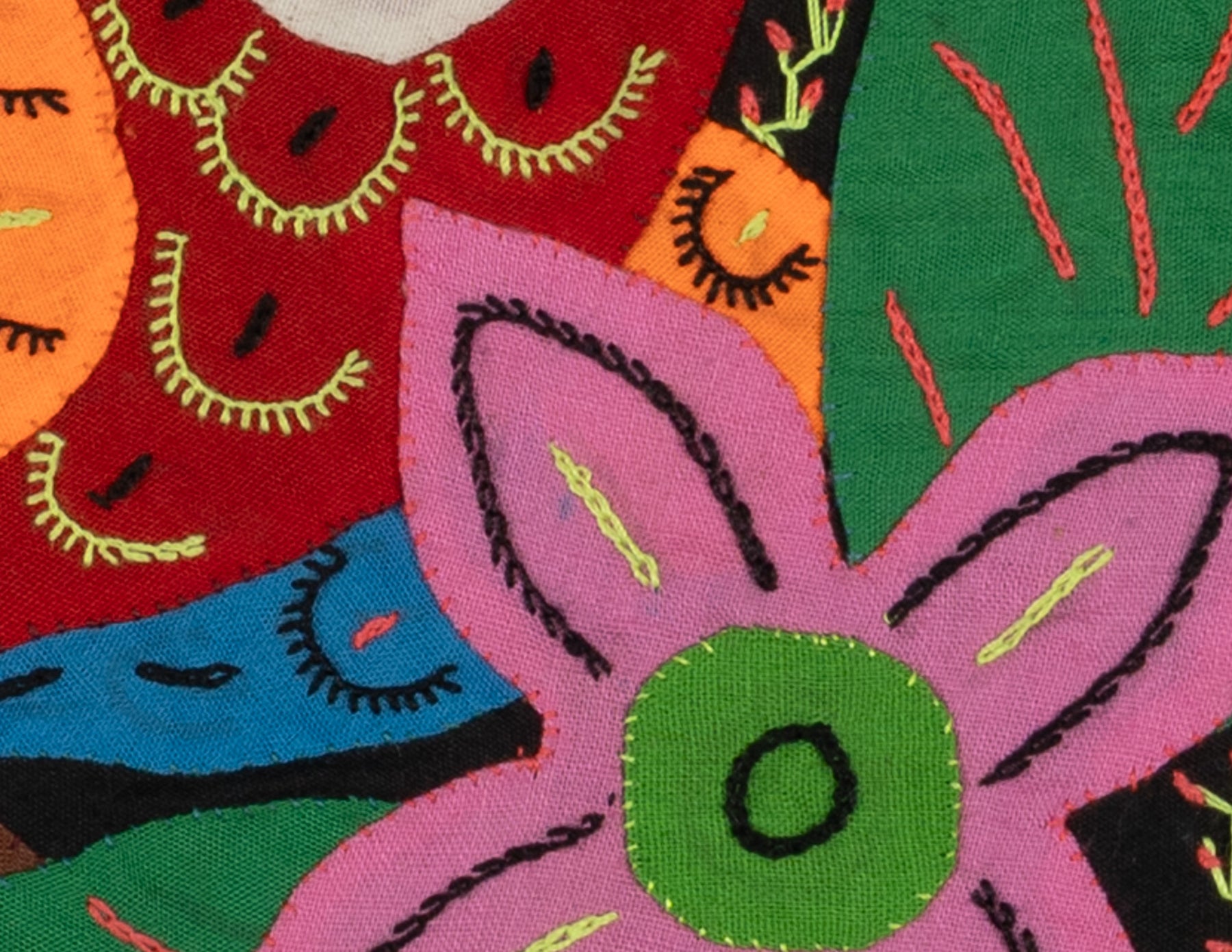 • Reverse appliqué design with layered cotton fabric and vivid colors
