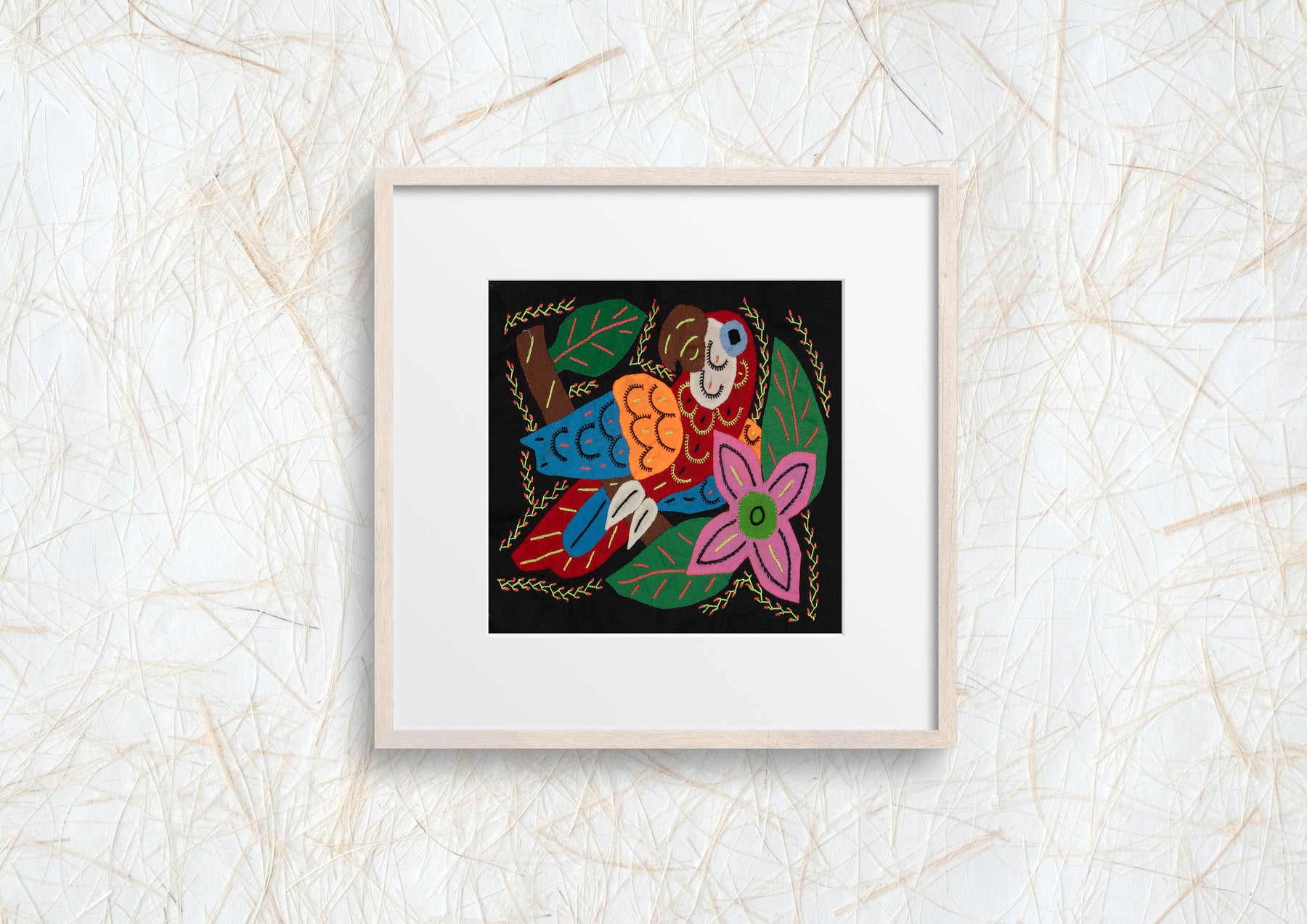 Molitas are traditionally used as parts of mola blouses, and today they make beautiful small works of art in their own right. You can frame this piece, incorporate it into a quilt or pillow, or display it on a shelf to bring a touch of vibrant Panamanian culture into your space. Because each molita is stitched by hand, no two are exactly alike, and small variations in color and stitching add to its character and authenticity.