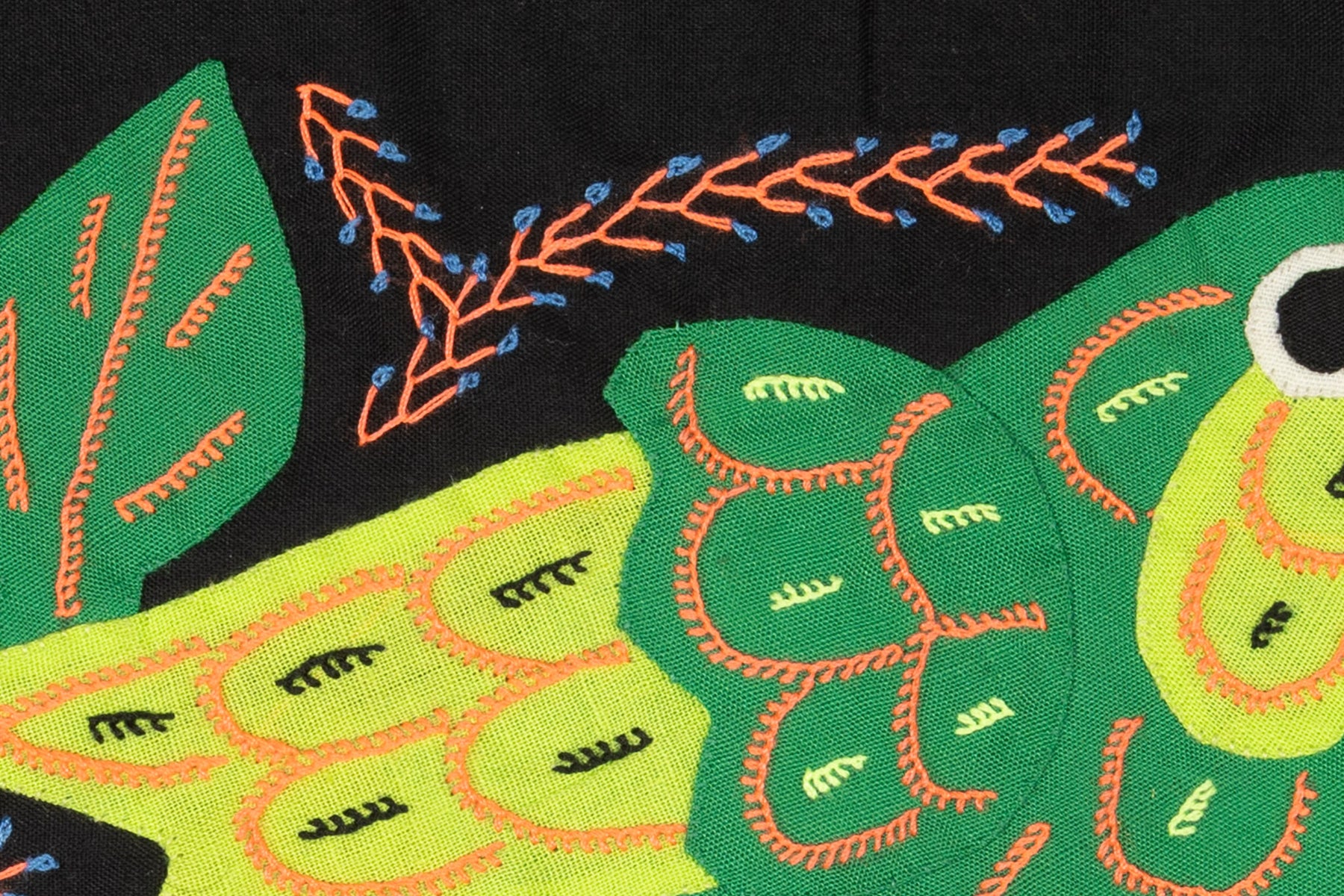 • Reverse appliqué design with layered cotton fabric and vivid colors