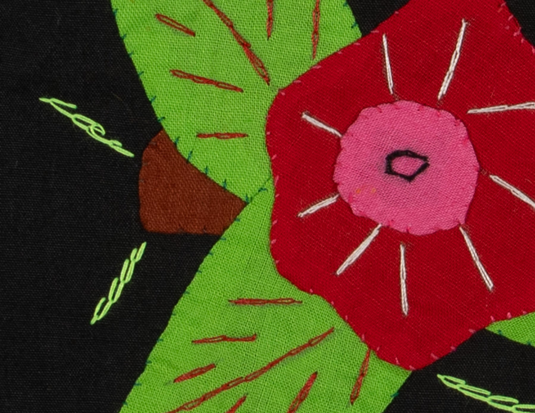 • Reverse appliqué design with layered cotton fabric and vivid colors