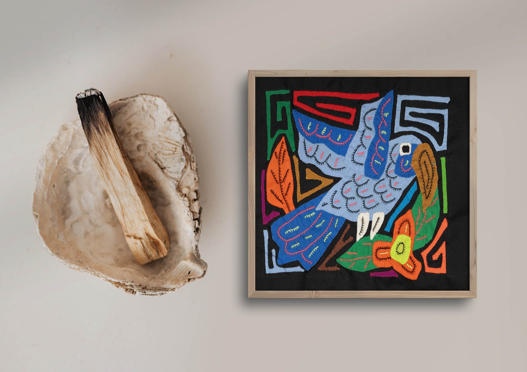 Molitas are traditionally used as parts of mola blouses, and today they make beautiful small works of art in their own right. You can frame this piece, incorporate it into a quilt or pillow, or display it on a shelf to bring a touch of vibrant Panamanian culture into your space. Because each molita is stitched by hand, no two are exactly alike, and small variations in color and stitching add to its character and authenticity.