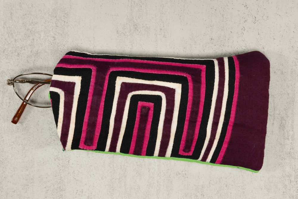 SEO Keywords: Handcrafted Eyeglass Sleeve, Panama Mola Art, Kuna Tribe Crafts, Cultural Accessories, Sustainable Fashion, Authentic Indigenous Art, Unique Eyewear Protection, Latin American Heritage, Artisanal Eyeglass Case.