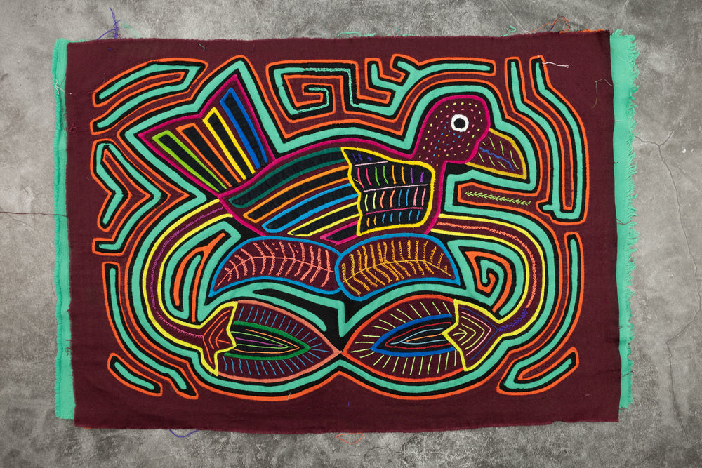 TRADITIONAL CONSTRUCTION & DESIGN: Molas are hand-made using a reverse appliqué technique using several layers of different colored cloth. The largest pattern is typically cut from the top layer and smaller patterns from each underlying layer. Geometric molas are the most traditional. Originating from ancient body paintings. Designs usually portray wildlife in the Rainforest. Inspiration comes from the nature and beauty that surrounds them.