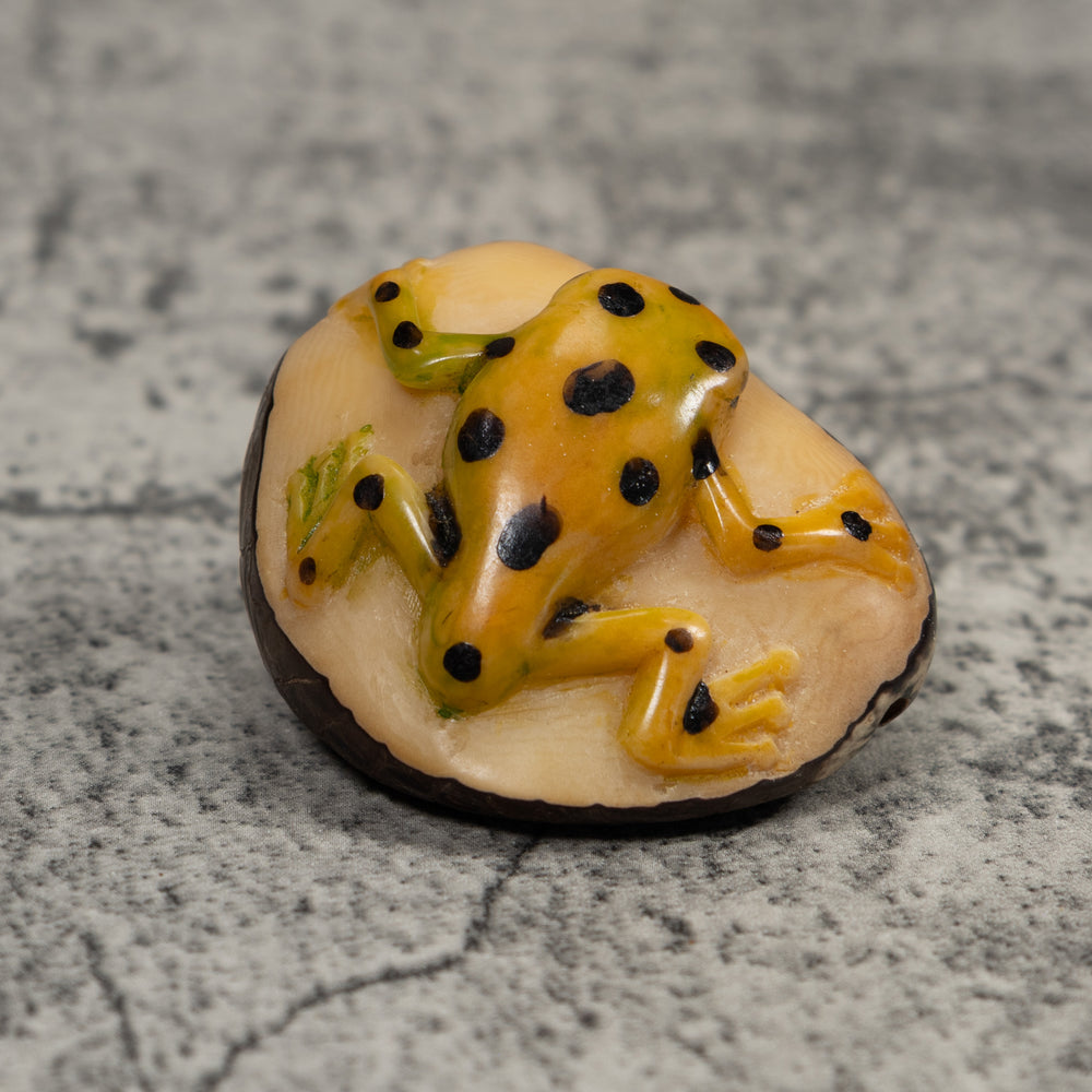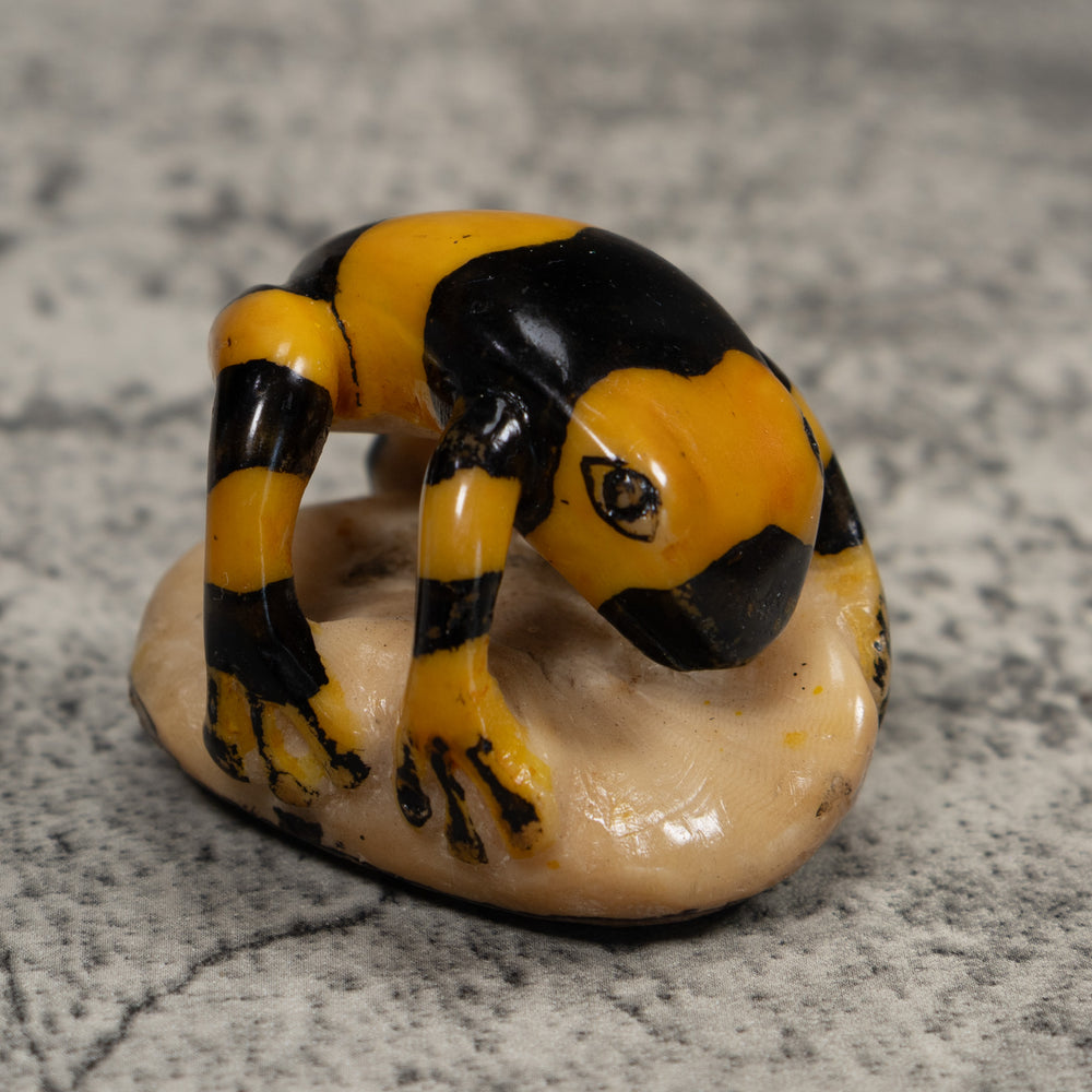 Vintage Yellow And Black Poison Dart Frog Tagua Carving