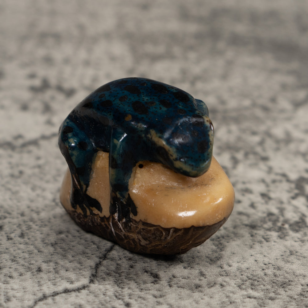 Vintage Black Blue And Yellow Frog Tagua Carving