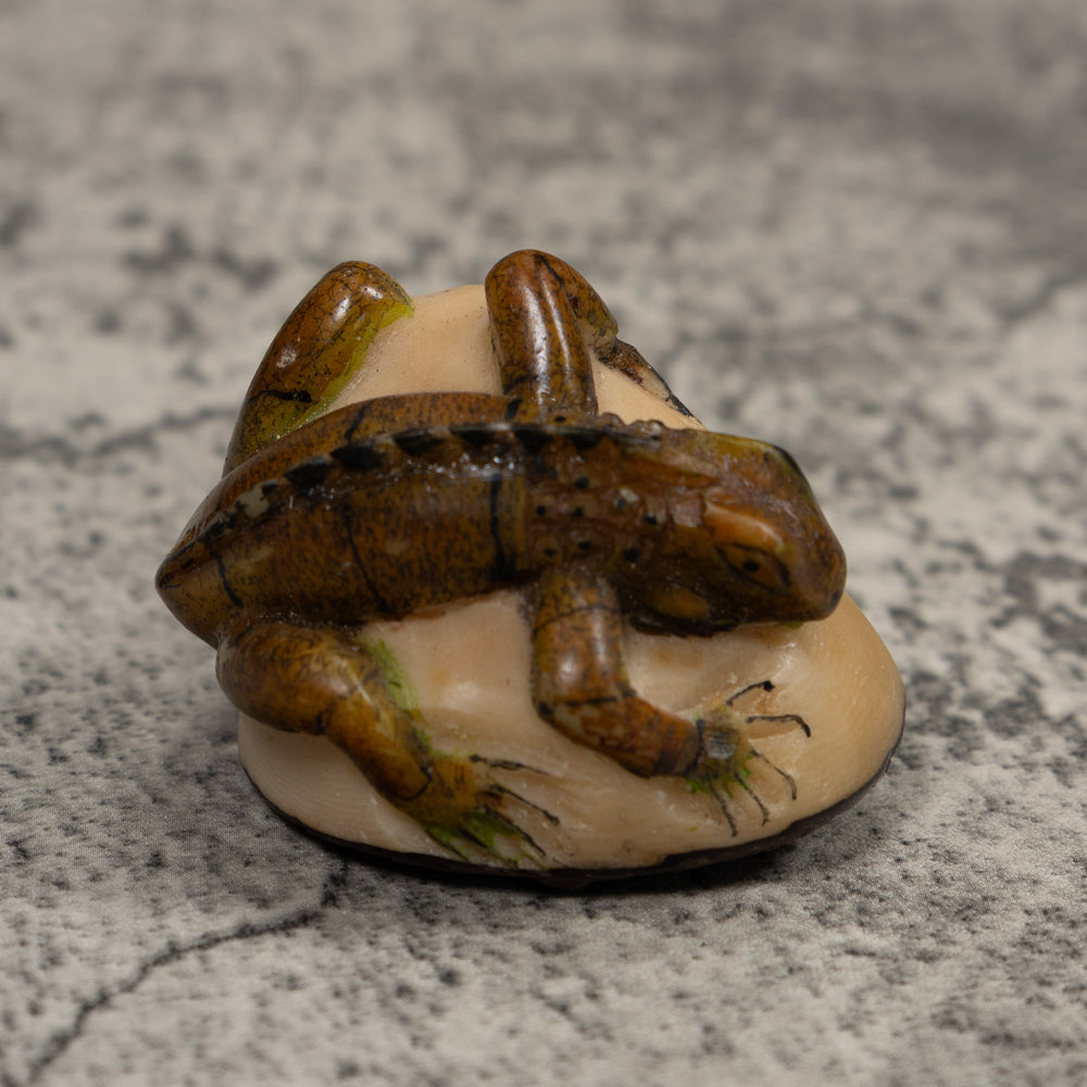 Vintage Green And Black Poison Dart Frog Tagua Carving