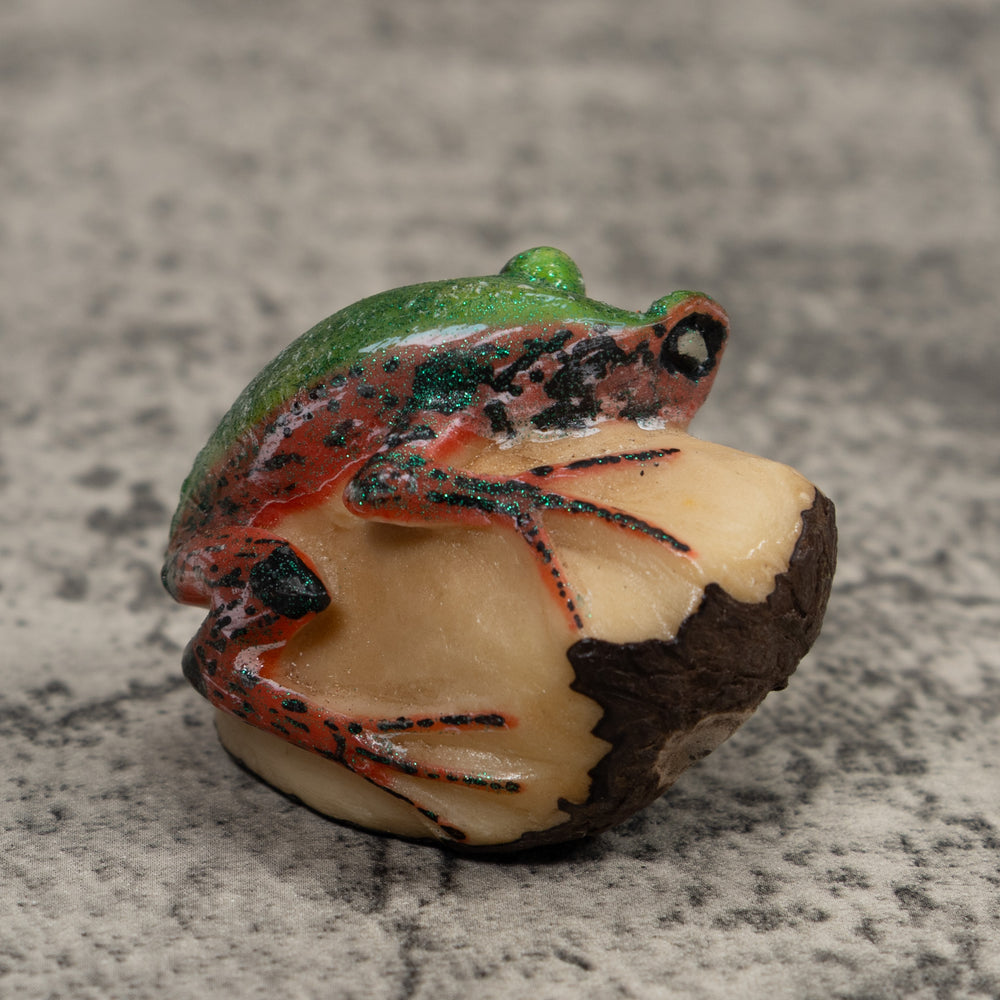 Vintage Red And Black Poison Dart Frog Tagua Carving